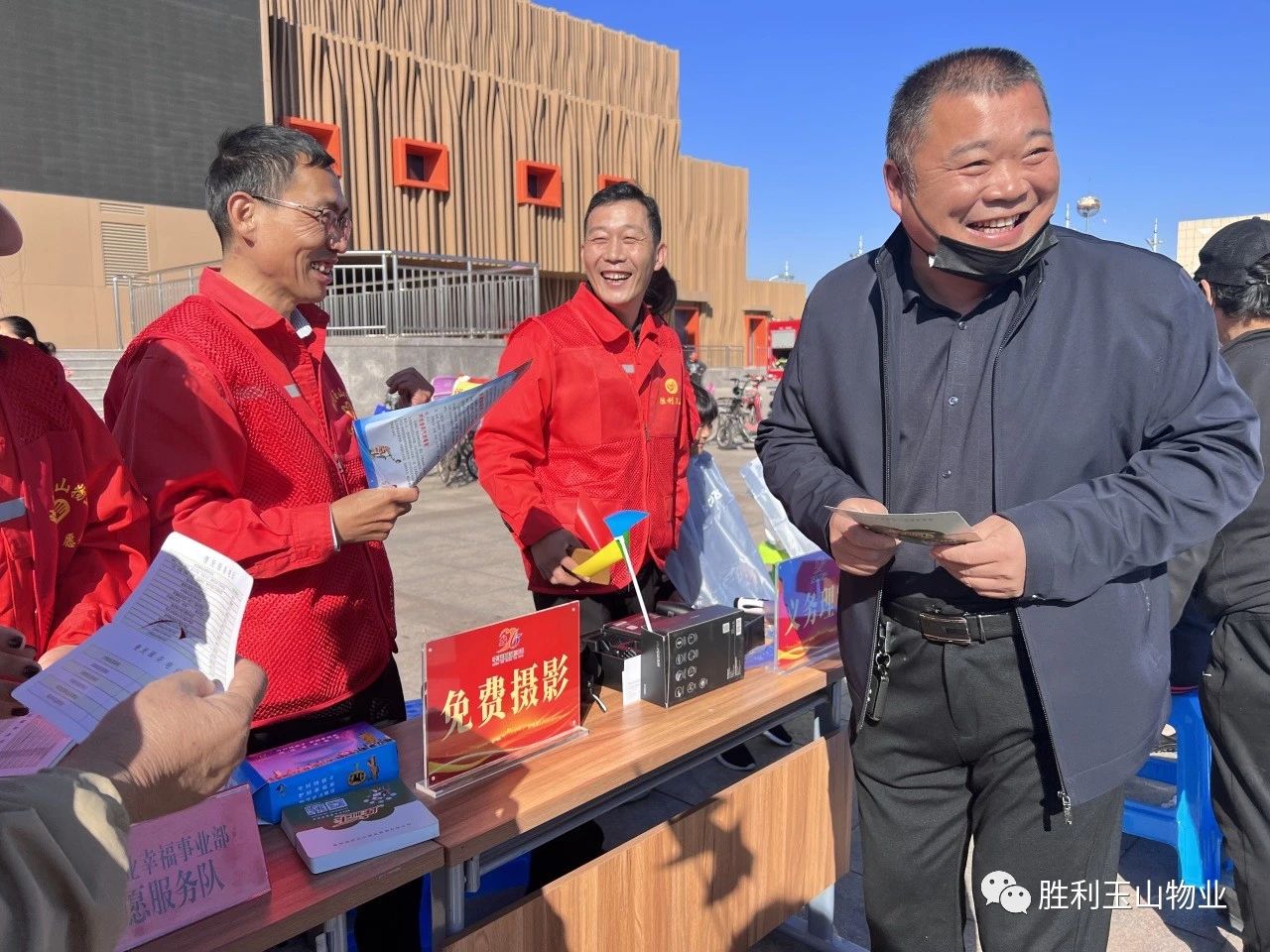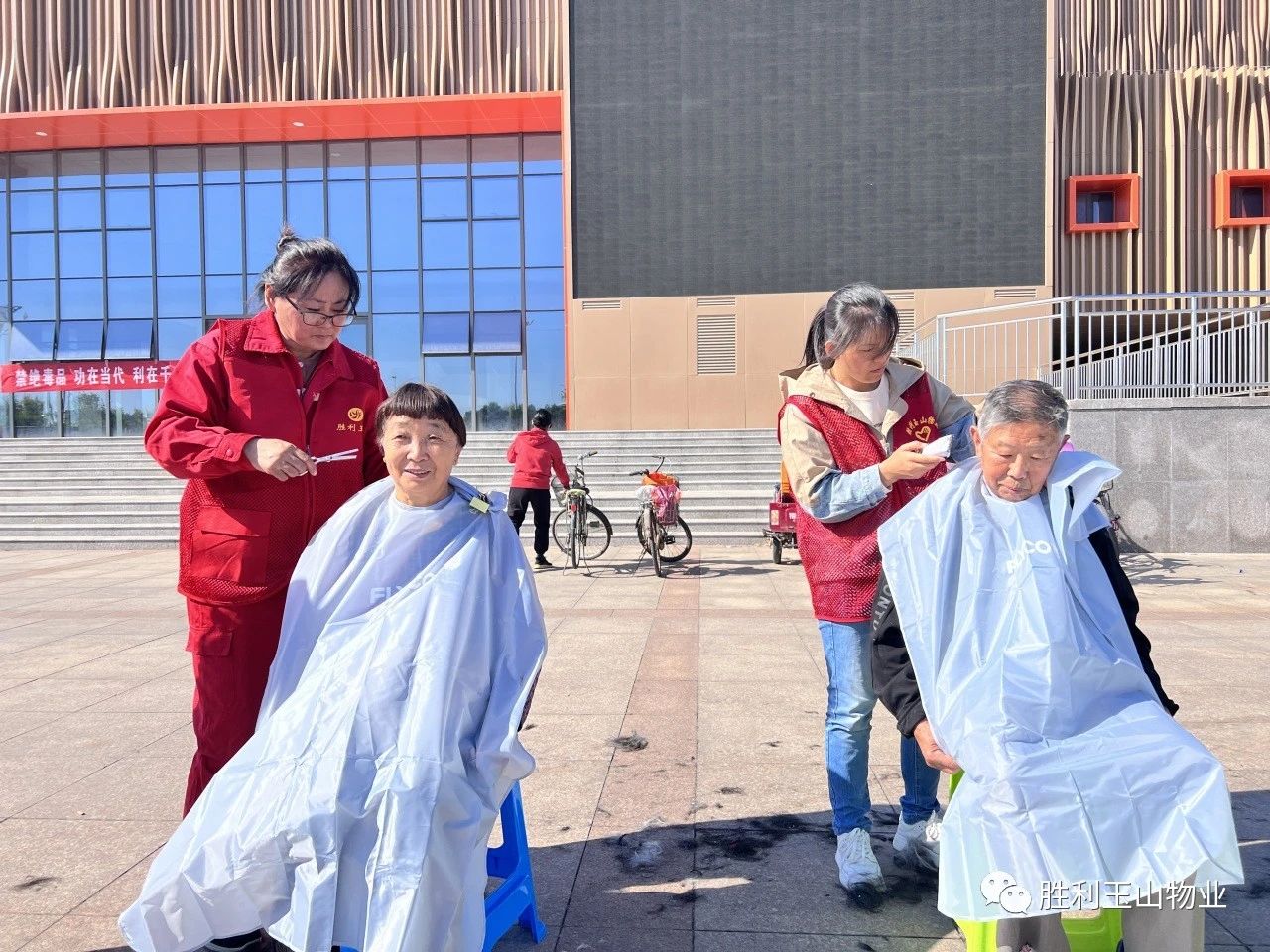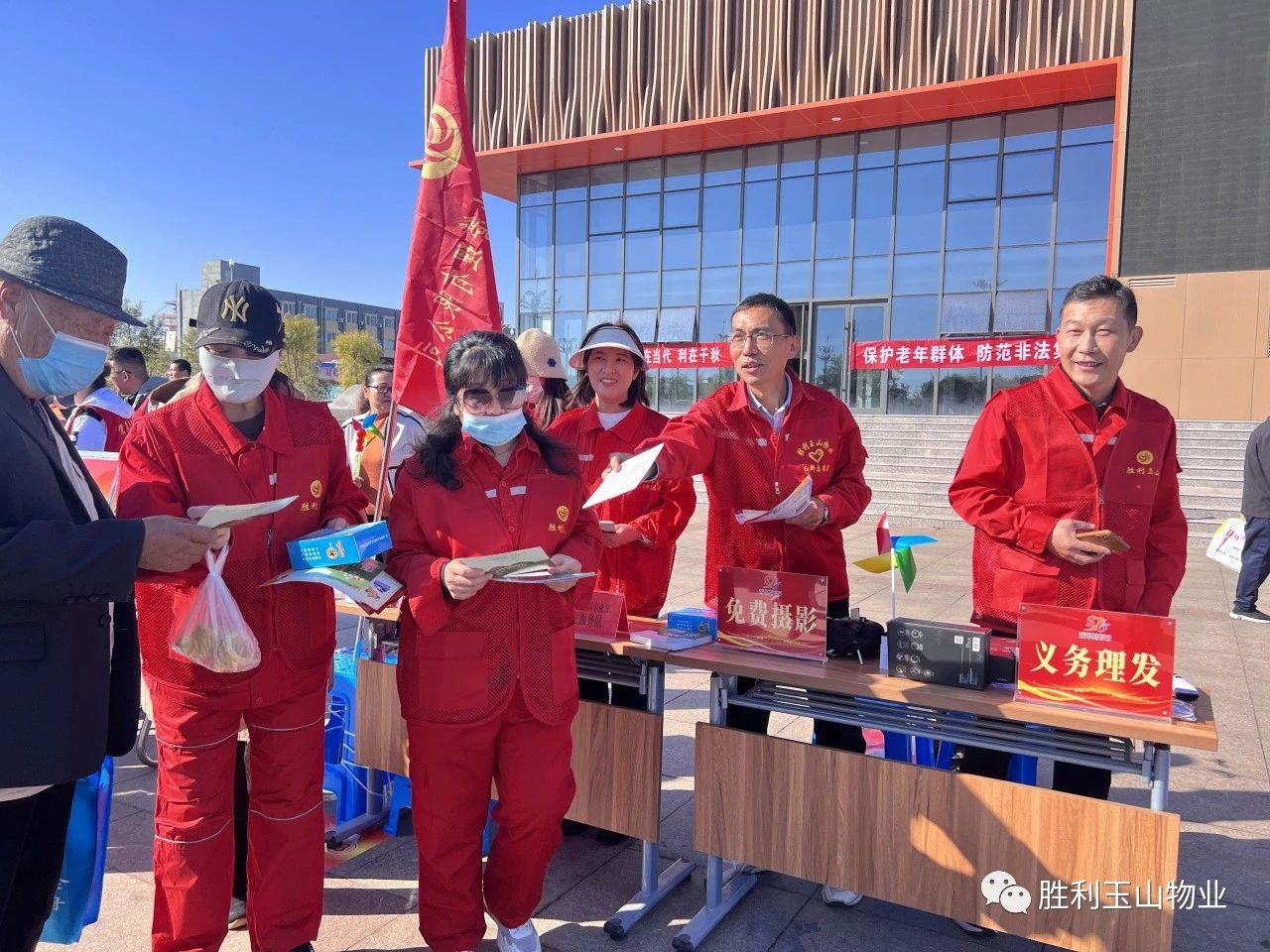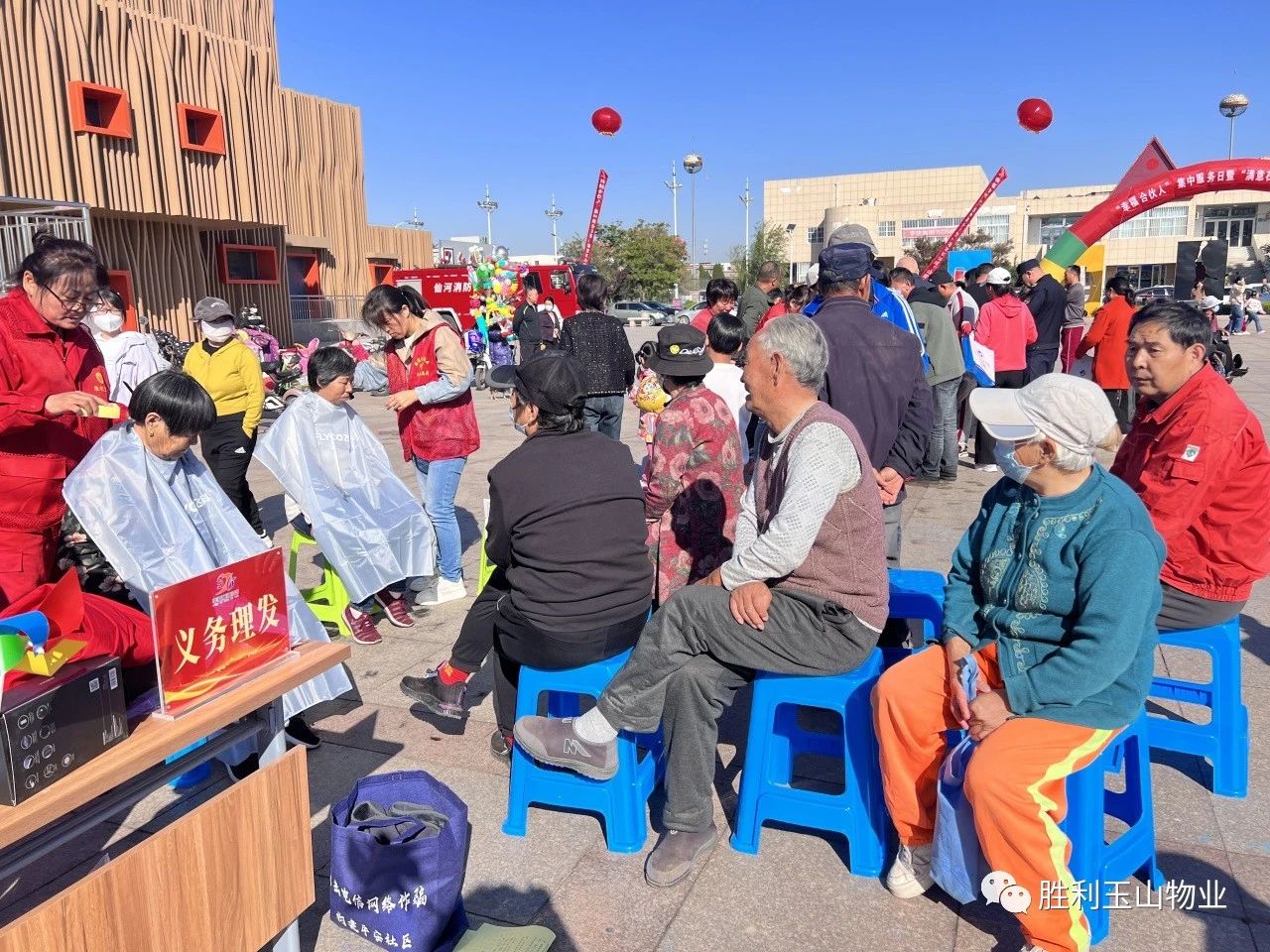 他们为业主提供24小时服务及物业监督电话,与业主沟通宣传胜利玉山物业的政策和为民服务的便捷方式,最为映入眼帘的是物业人为广大群众“义务理发”这个区域。这里不一会排了长长的队,热闹非凡。有老人、中年人和小孩,足以说明我们物业人的多面手,别的区域还有很多物业服务项目提供,真的是为业主带来了一站式服务,现场效果太棒了!