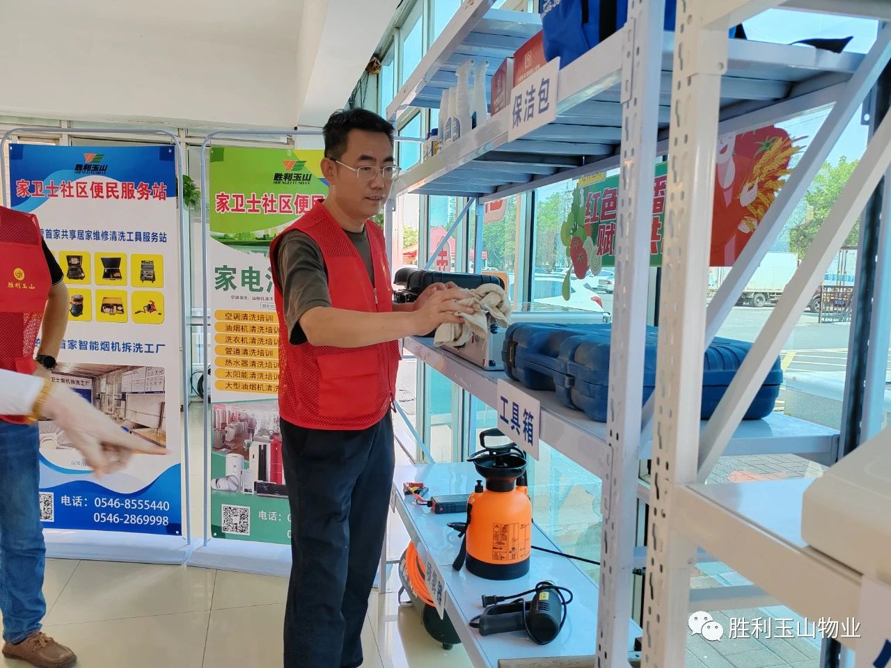 “居家工具共享服务”公益365志愿服务在于行。随着社会的发展,生活水平的提高,居民对商业类服务的需求也越来越大,对信息化普及的意愿也越来越强,为加大居民的生活保障,帮助居民解决实际困难、实施环境卫生的综合提高。胜利玉山物华事业部与玉景社区合作成立了共享工具驿站,秉持“服务至上”的理念,把居民的日常所需放在首要位置,严格做到“有耐心、有爱心,有热心”,实现居民“求有所助”。