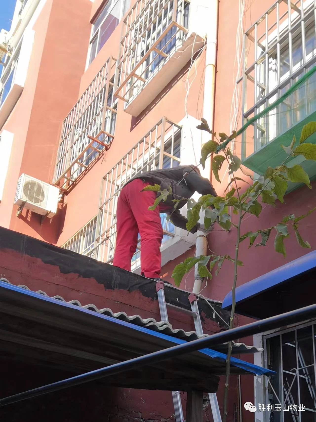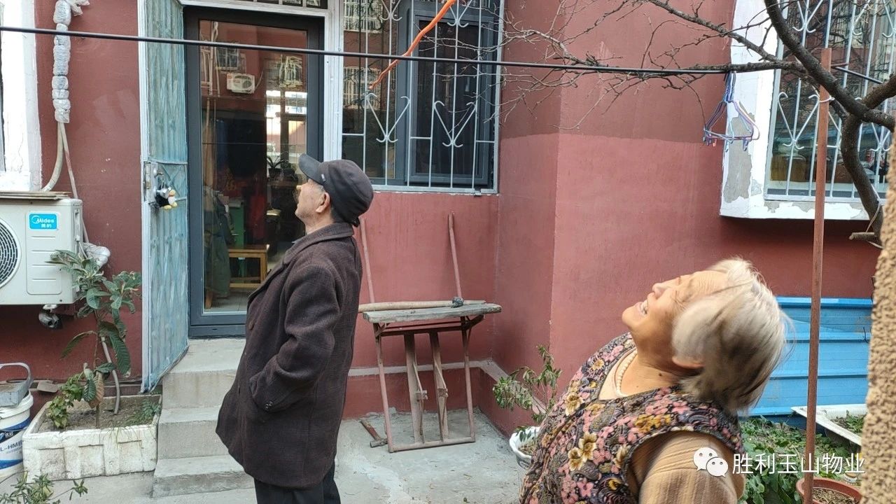 为防止水泥继续脱落,他们立即顶着北风,冒着严寒,扛着梯子、带着尼龙网、铁丝和其它工具赶到了纯绣小区一区四栋二单元一楼巨女士的小院,克服天寒地冻不能施工的困难,他们登梯子栓铁丝、爬窗户、上房顶,安装防坠落尼龙网。