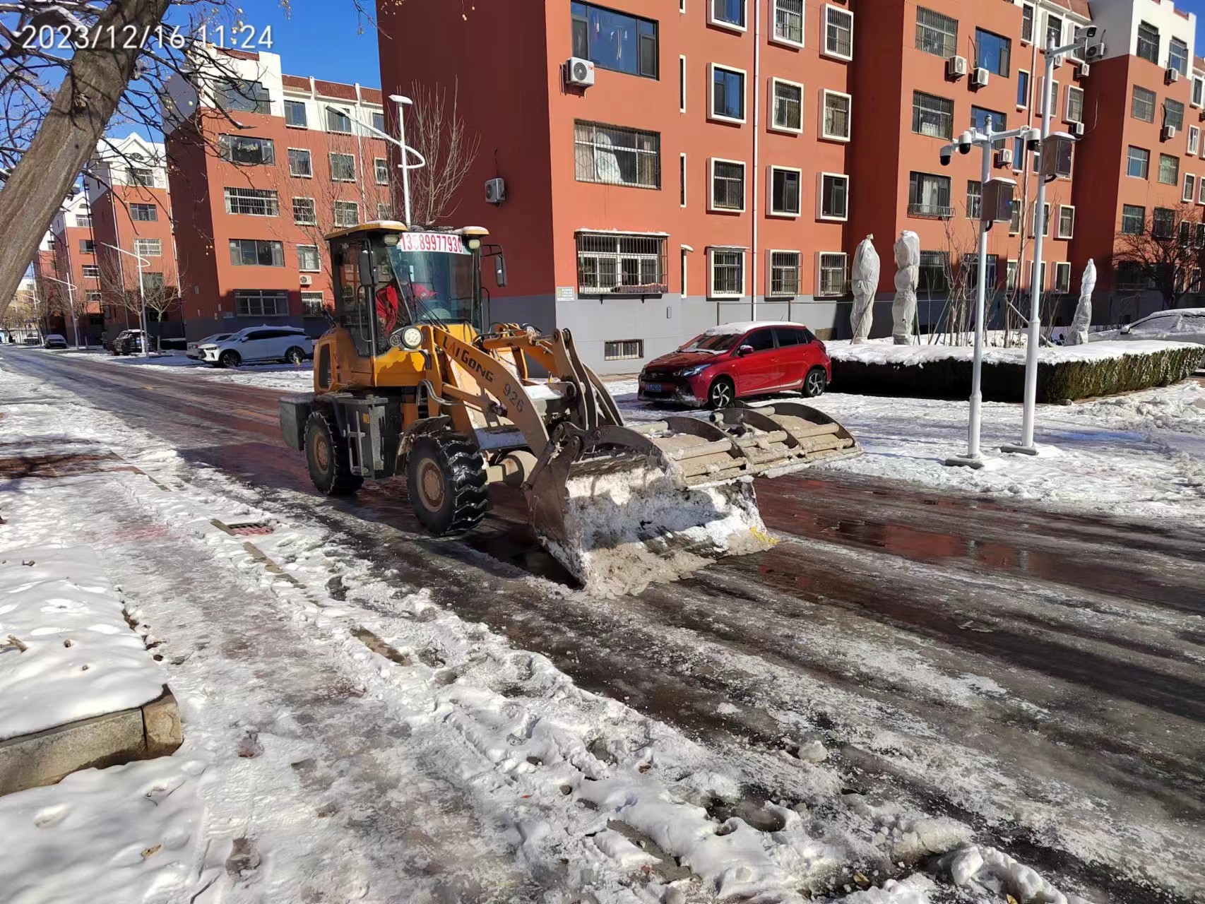 截止18号下午3点,辛兴事业部已在路面撒融雪剂108袋。各小区内的主干道基本清理干净。现在又开始清理居民楼前楼后的积雪。