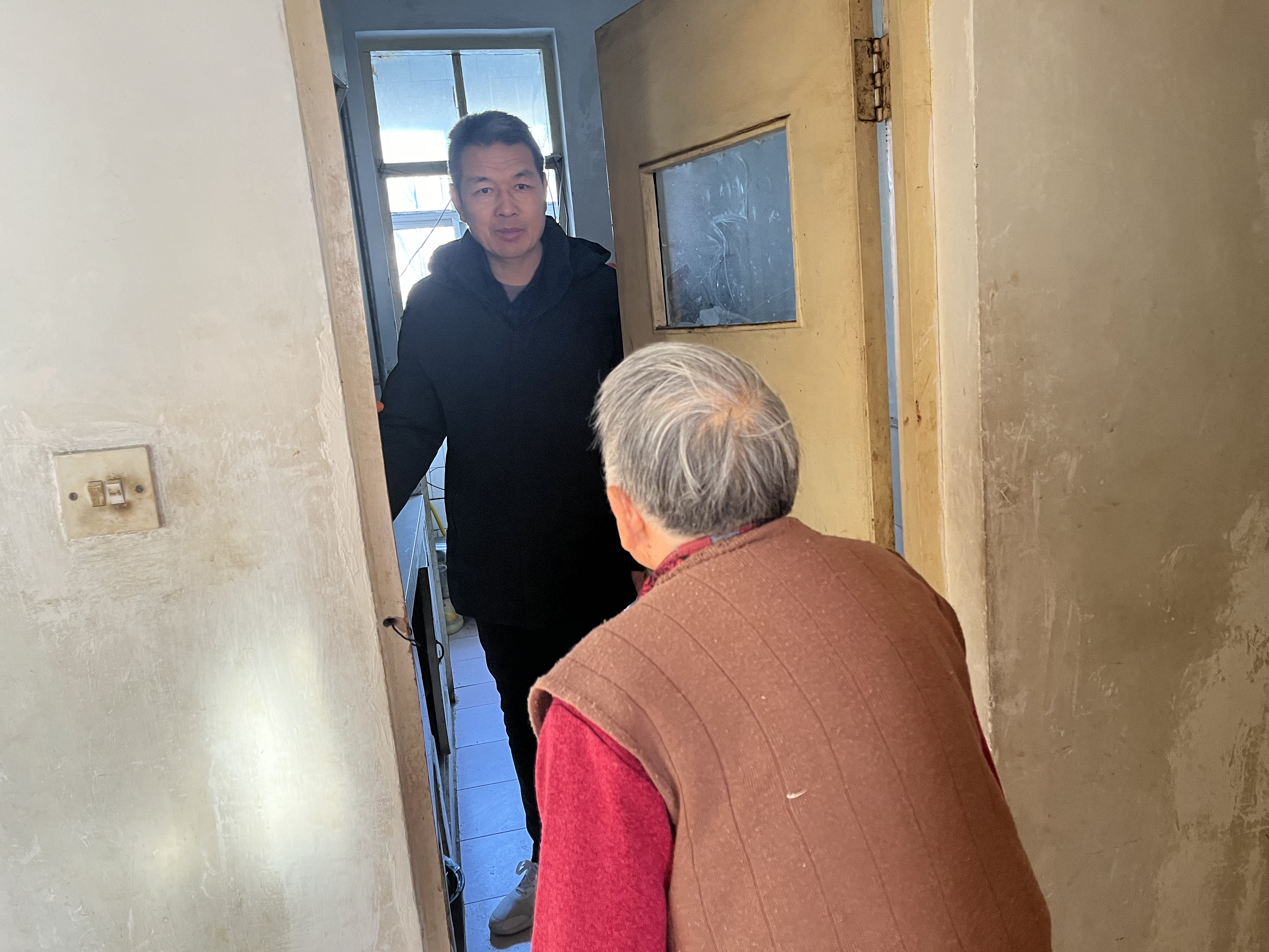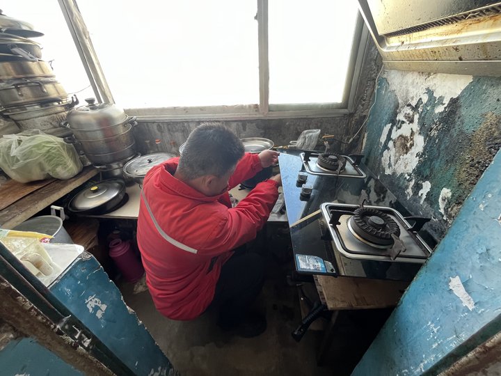陈显峰来到楼下先是查看了水表,密封和保温做得很好,没有问题。又敲开老阿姨家的门,打开水管,水管上有细的水流出,看来是温度升高水管线逐渐开始解冻。他悬着的心终于放下了,耐心嘱咐老大娘,夜里气温低至零下10°以下,一定要保持水龙头长流水状态,厨房温度低,也要保持常开状态,水管才不会冻住,流出来的水可以收集起来冲厕所和洗菜,不至于浪费。