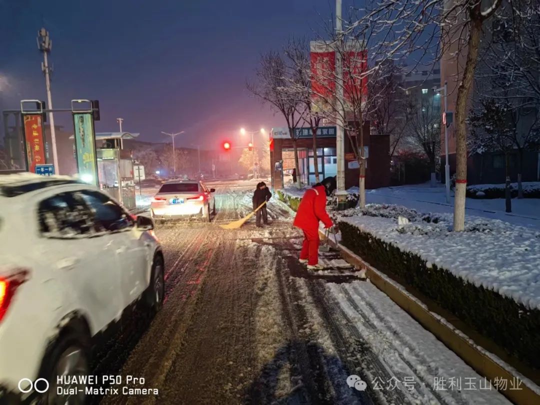 1月16日晚,山东再次被厚厚的白雪覆盖,这是年前的第二场强降雪。雪,洁白而纯净,却也给人们的出行带来了诸多不便。就在这样的雪夜里,有一群人默默坚守,为确保居民的安全出行而努力。他们就是胜利油田玉山物业管理有限公司的员工们。