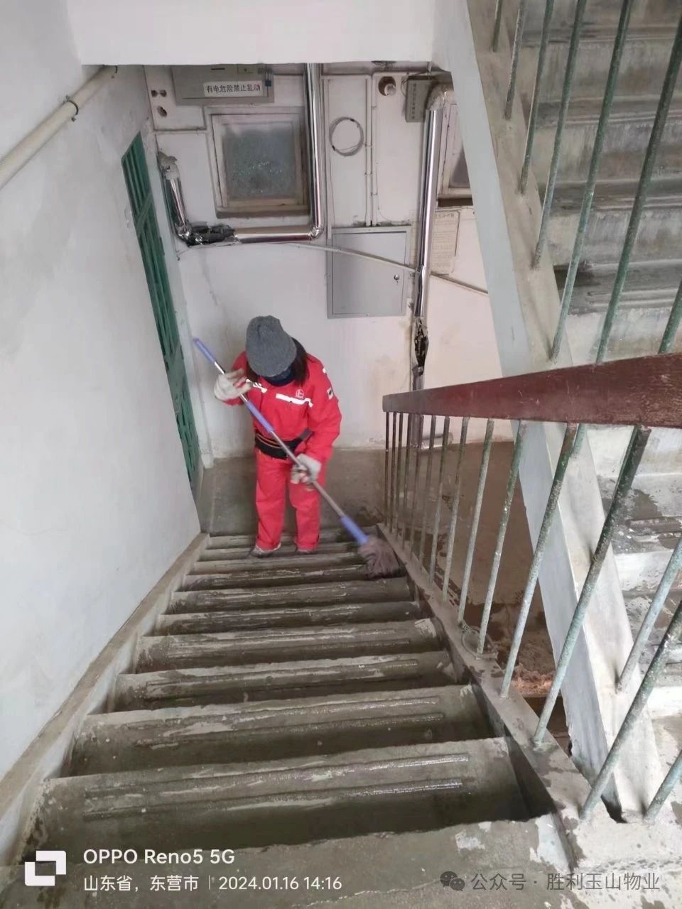 胜兴事业部把提升服务质量作为首 要工作来抓,在做好日常保洁工作的同时,组织人员对卫生死角、楼道杂物、垃圾点、化粪池等进行集中清理,尤其对居民关注的楼道窗台、栏杆、扶手等部位,由上到下的进行擦拭、清扫浮尘、清拖、清理杂物等作业,确保楼道干净整洁。事业部每日按照实际工作量,填报小区大扫除活动进度表,并由专人负责质量督查工作。