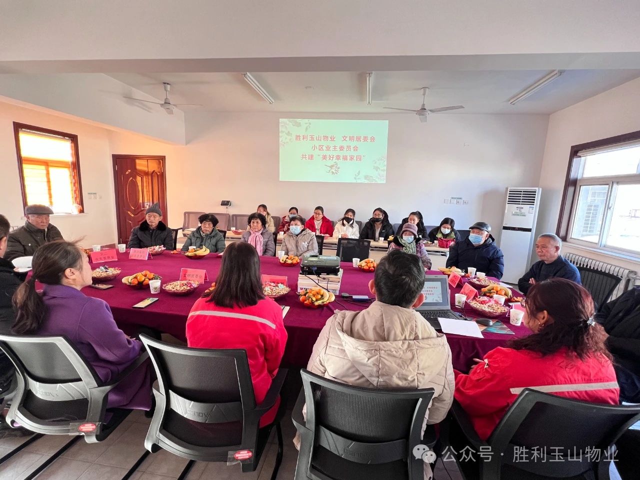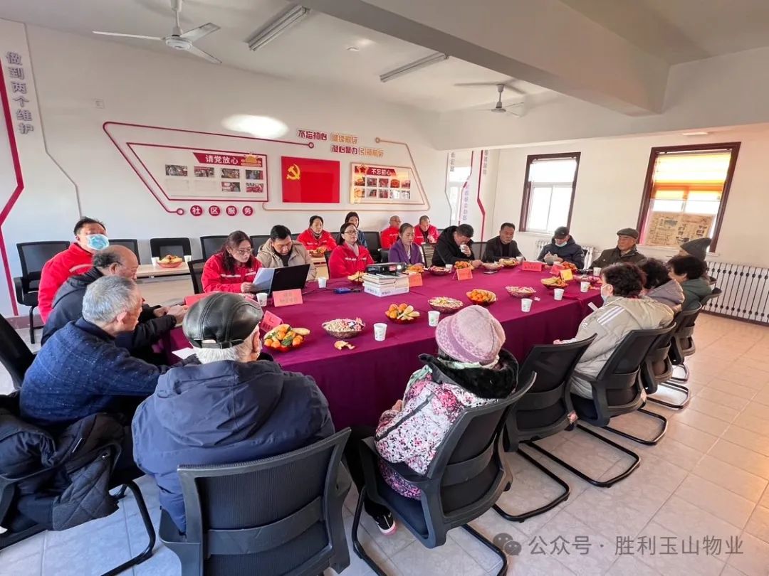 2024年1月24日下午,在胜利玉山物业幸福事业部建设项目二楼会议室召开“共建美好幸福家园”茶话会,茶话会有小区业委会、业主代表、建设居委会及幸福物业代表参加。