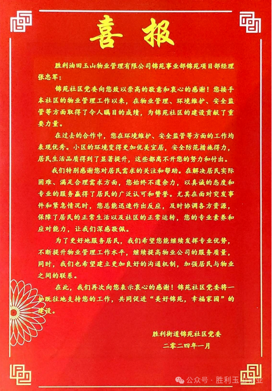 胜利玉山物业公众号