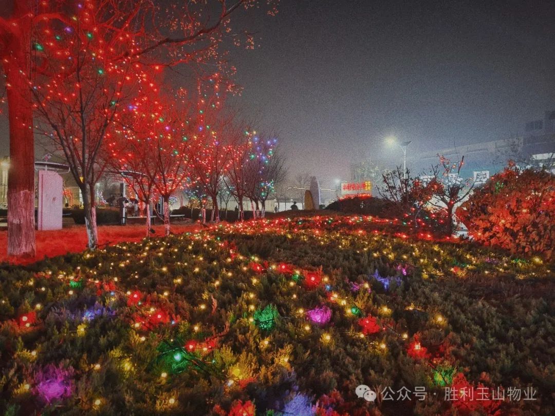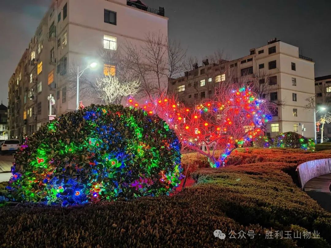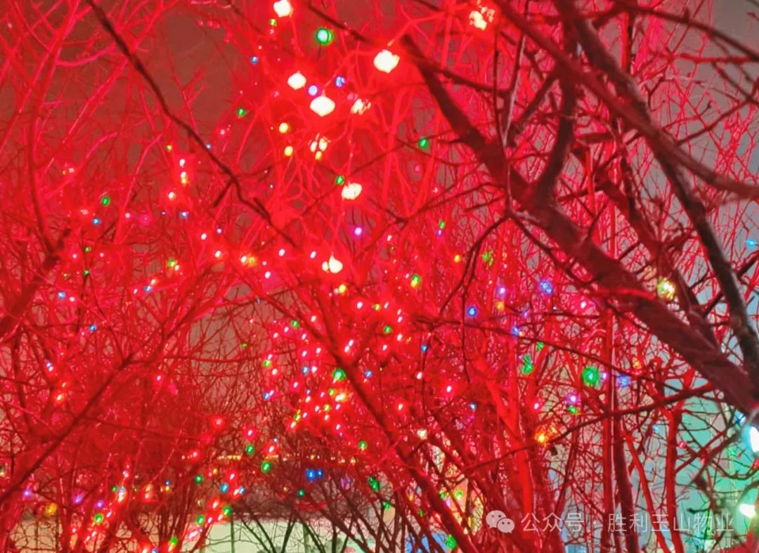 你瞧,那一串串红灯笼挂满了各个角落,像是为小区穿上了节日的盛装。每个灯笼都寄托着喜庆、团圆和美好的祝愿,为寒冷的冬日带来了丝丝暖意。而那些五彩斑斓的彩灯,夜幕下闪烁着温暖的光芒,如同点点繁星点缀着夜空,更是将夜晚装点得如梦如幻,仿佛置身于童话世界中。