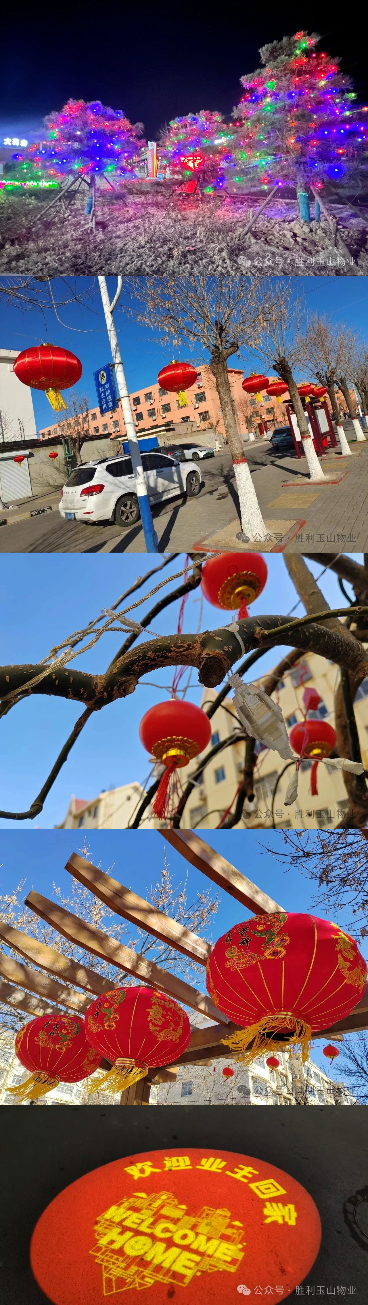 各事业部组织人员清扫小区环境,确保道路干净整洁,给居民创造一个宜居的环境。同时,小区内挂满了红色的灯笼和彩灯,处处洋溢着节日的喜庆气氛。这些精心布置的细节,让居民们感受到了物业的用心和关怀。