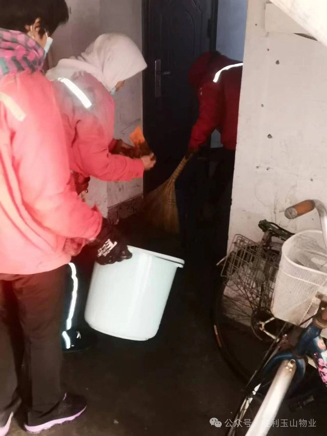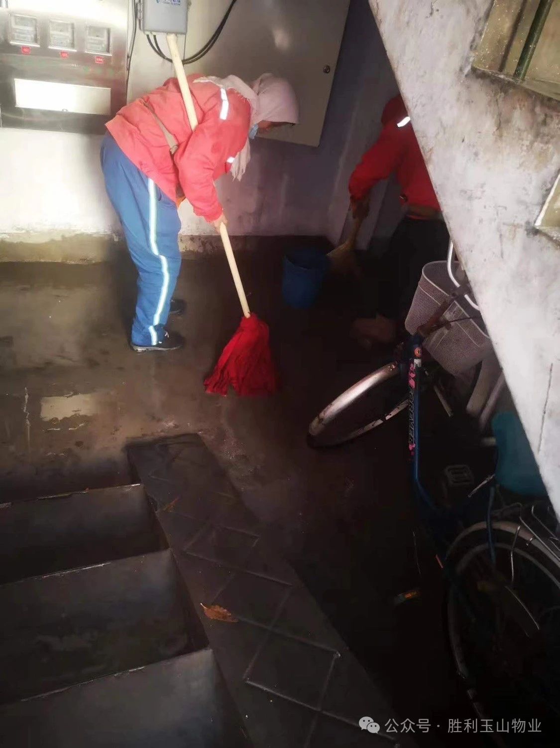 清理完积水,沈英又怕业主家电器设备存在漏电的安全隐患,及时联系物业维修人员排查,确保一切正常后安心离开,拖着疲惫的身子离开业主家,这时都已经是下午13点多了。
