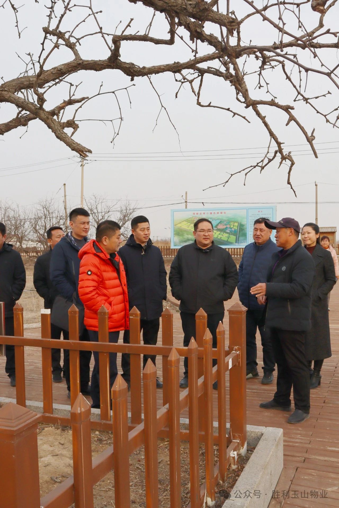 在捐赠仪式上,王培华将捐赠牌授予湾杨村,湾杨村为玉山物业赠送了锦旗表示感谢。这一环节将活动推向了高潮,现场掌声雷动,气氛热烈而感人。随后,领导们还参观了古枣园的枣树,感受了湾杨村的历史文化和自然风光。