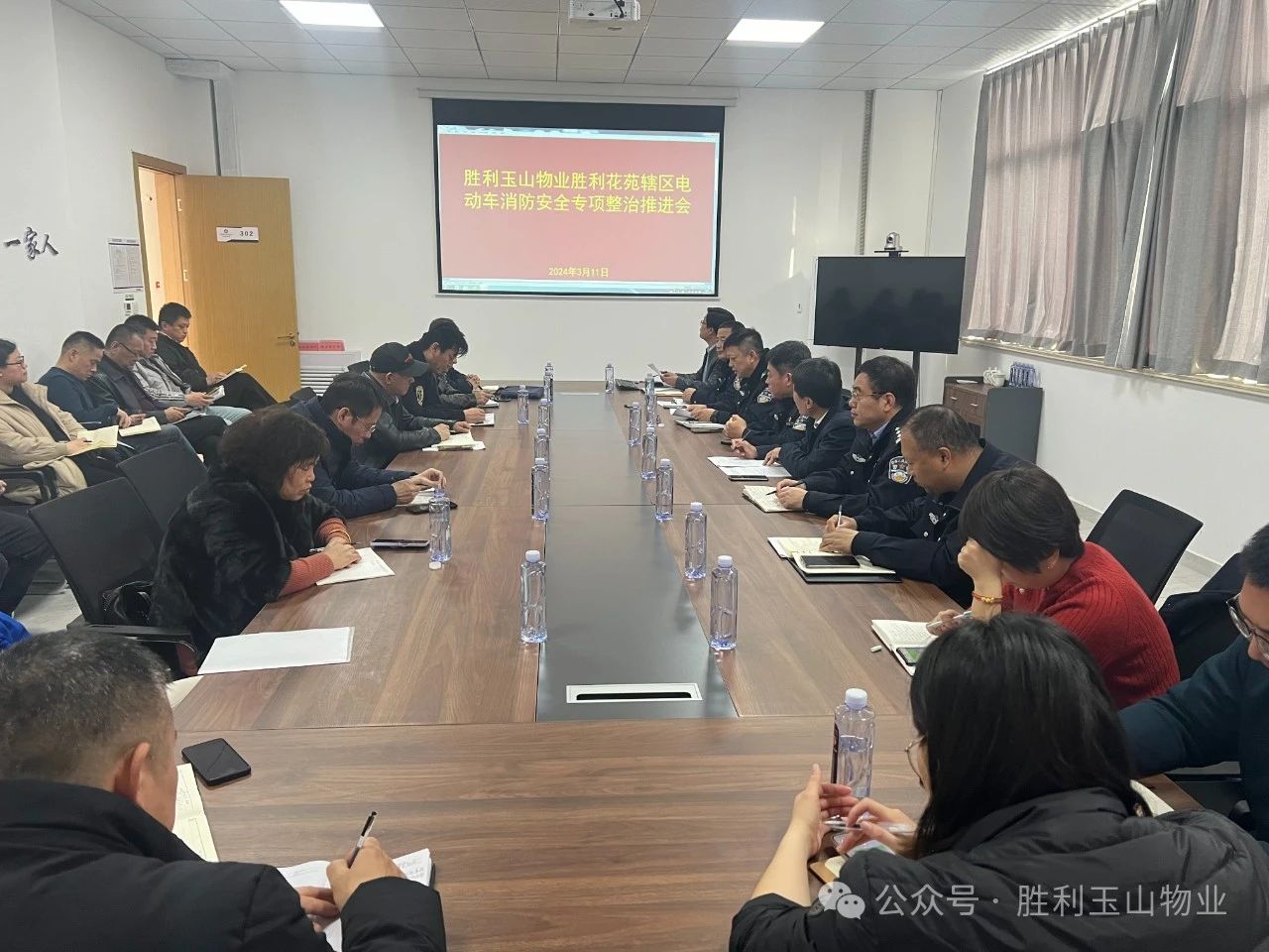 3月11日,胜利花苑事业部组织召开辖区电动自行车消防安全专项整治推进会。东营区辛店街道、滨海公安局消防支队、基地分局消防大队、物华派出所、辖区各社区和胜利玉山物业相关人员等共计30余人参加会议。