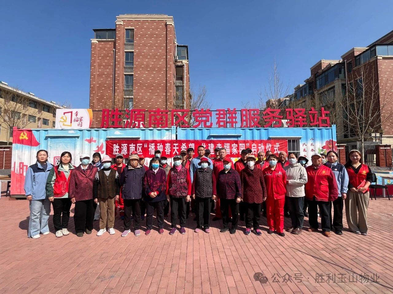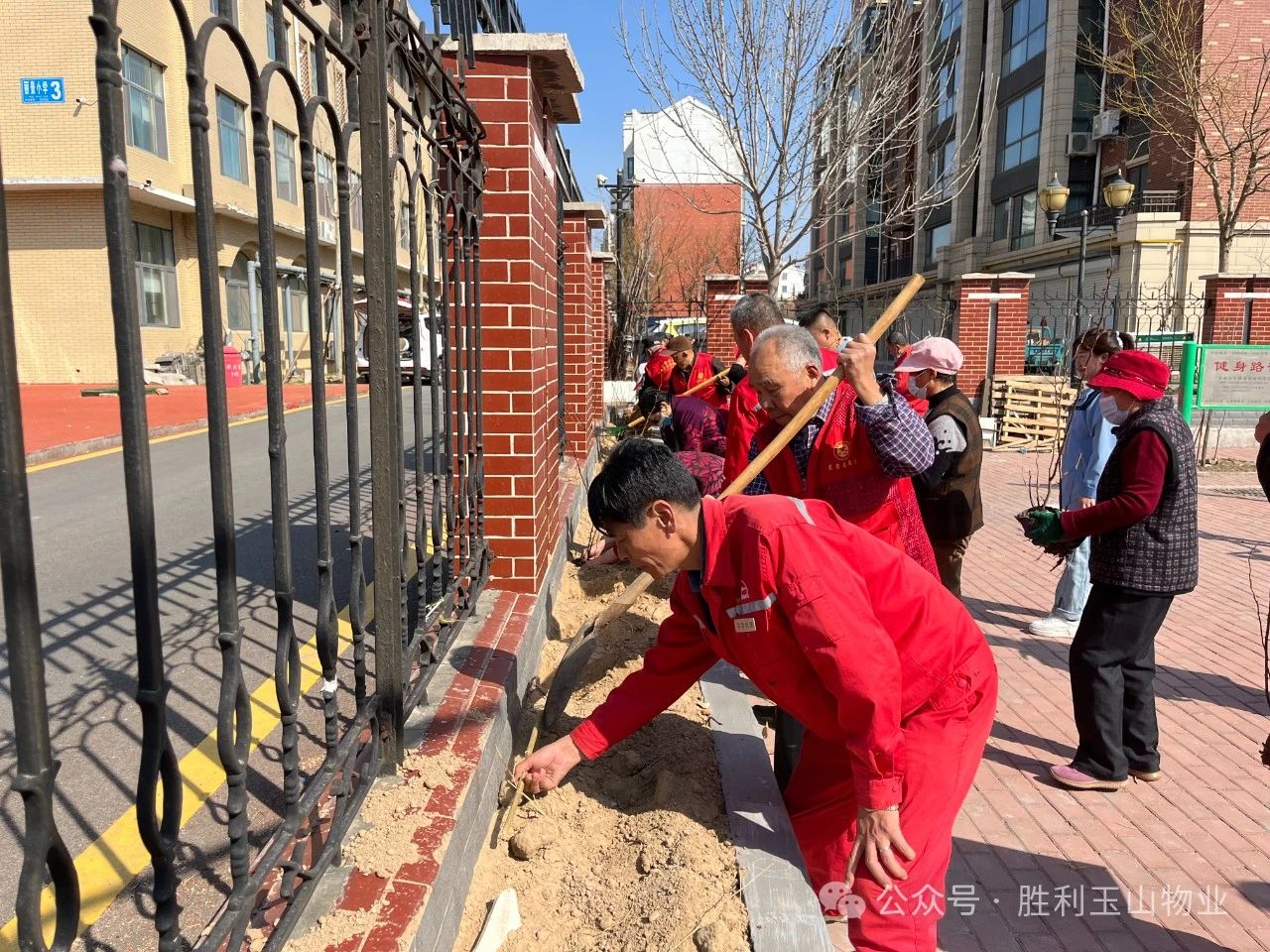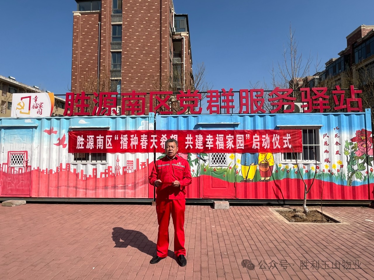 为进一步美化居民的生活环境,共建美好家园,提升保护环境的意识,在这春意盎然、生机勃勃的阳春三月,胜利玉山物业瑞达事业部联合丽景社区、胜源南区党支部及部分居民代表,在胜源南区共同举办了以“播种春天希望,共建幸福家园”为主题的小区种绿、护绿活动启动仪式。