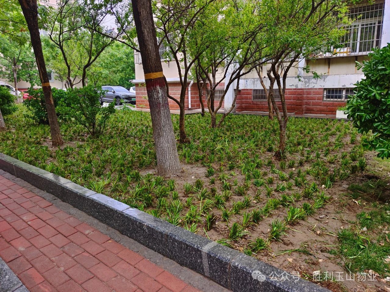 近日,胜利玉山物业兴河事业部各小区进行了一次绿化升级工程。为了美化小区环境,提升居民生活品质,兴河事业部特地申请资金,对小区内的绿化进行了全面的整治和补栽。其中,麦冬作为本次补栽的重点植物,以其独特的生态价值和观赏价值,为小区注入了新的生机与活力。