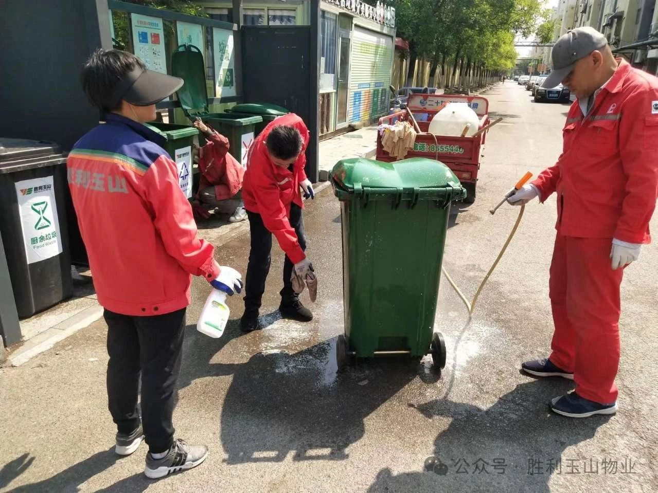 胜利玉山物业物华事业部在“小区物业服务质量百日提升”活动中,针对小区内的垃圾台进行了精细化的管理和治理。事业部在日常管理中不仅从桶外到桶内进行了彻底清洗与消毒,还确保垃圾台无异味、无污渍。同时,他们采取了一系列有效的管理措施,如增加清洗频次,对垃圾棚、洗手池等周边设施进行了深度清洁,重新张贴了垃圾分类引导标识,并加强了巡视频次。一旦发现外置垃圾与散落垃圾,及时进行了清理,有效避免了垃圾堆积的现象,确保了垃圾桶、台的整洁。
