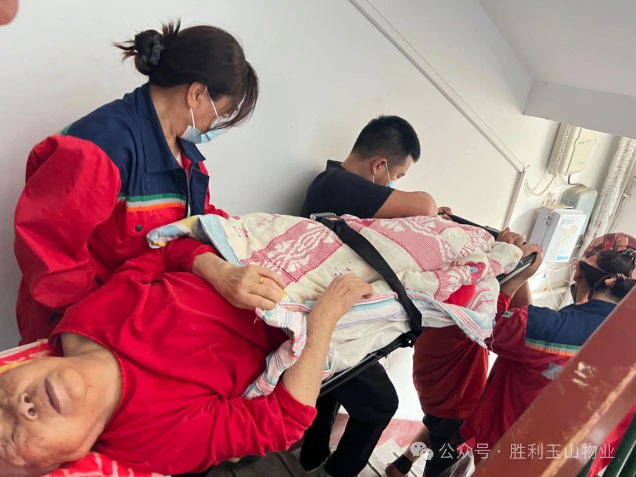 华瑞项目经理常伟接到老人的求助电话后,立即放下手头工作,第一时间拨打了急救电话,并组织人员携带担架和急救设备,迅速赶到老人家中。