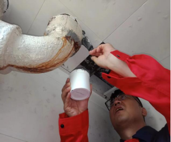 居民家中污水管道老化,居民深受困扰,到物业站找人解决,毕班长得知,自费购买防水胶, 为居民解决污水管道老化问题,居民表示十分感谢。