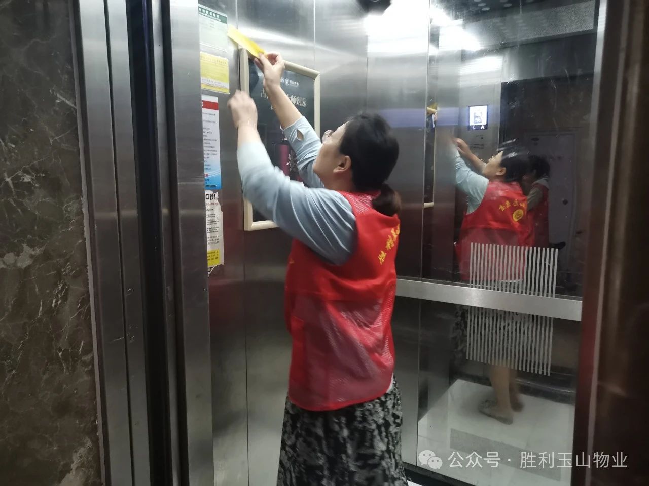 1. 志愿者们仔细检查了电梯内部张贴的各类安全提示信息,包括乘客须知、电梯维护保养单位安全承诺书、公众聚集场所提示、电梯维保时间及应急救援电话等,确保所有信息完好无损且更新及时。