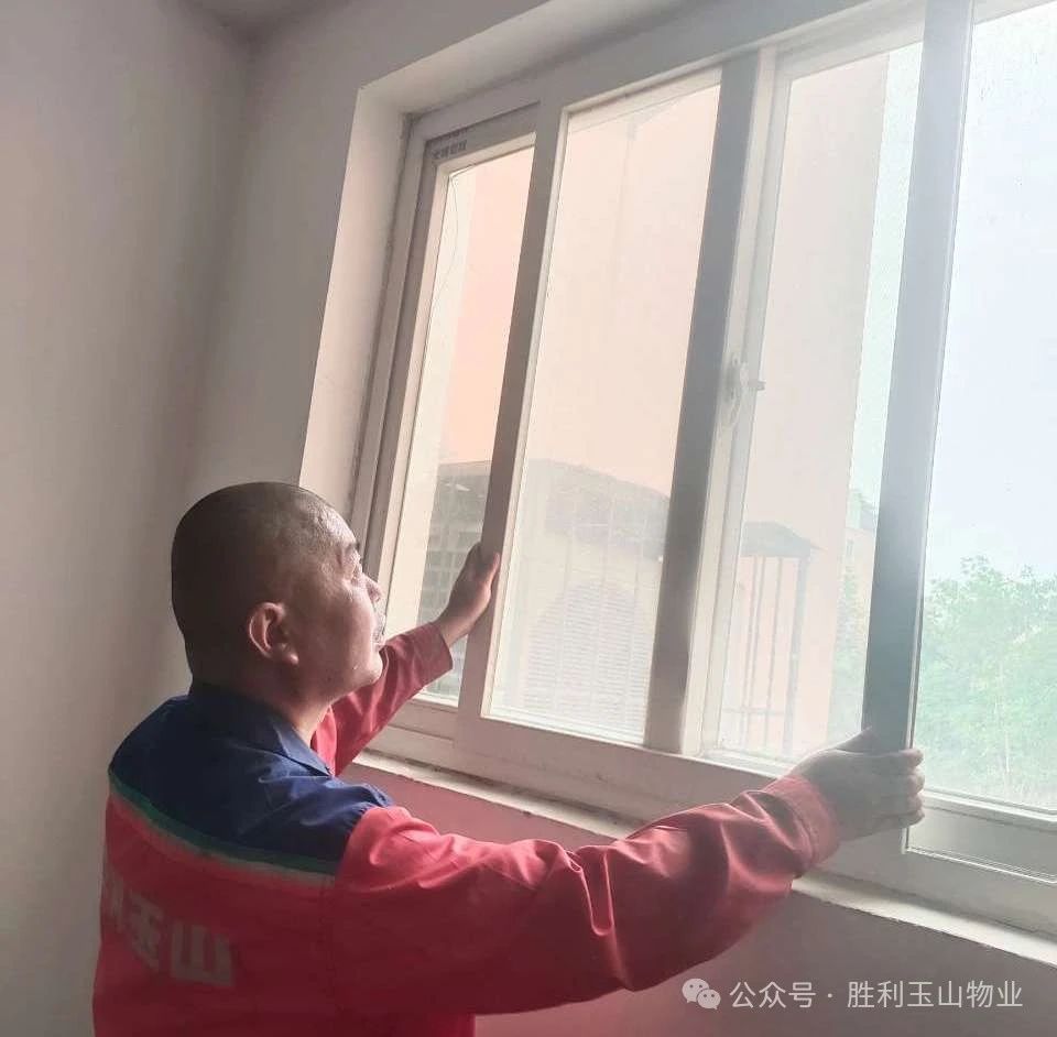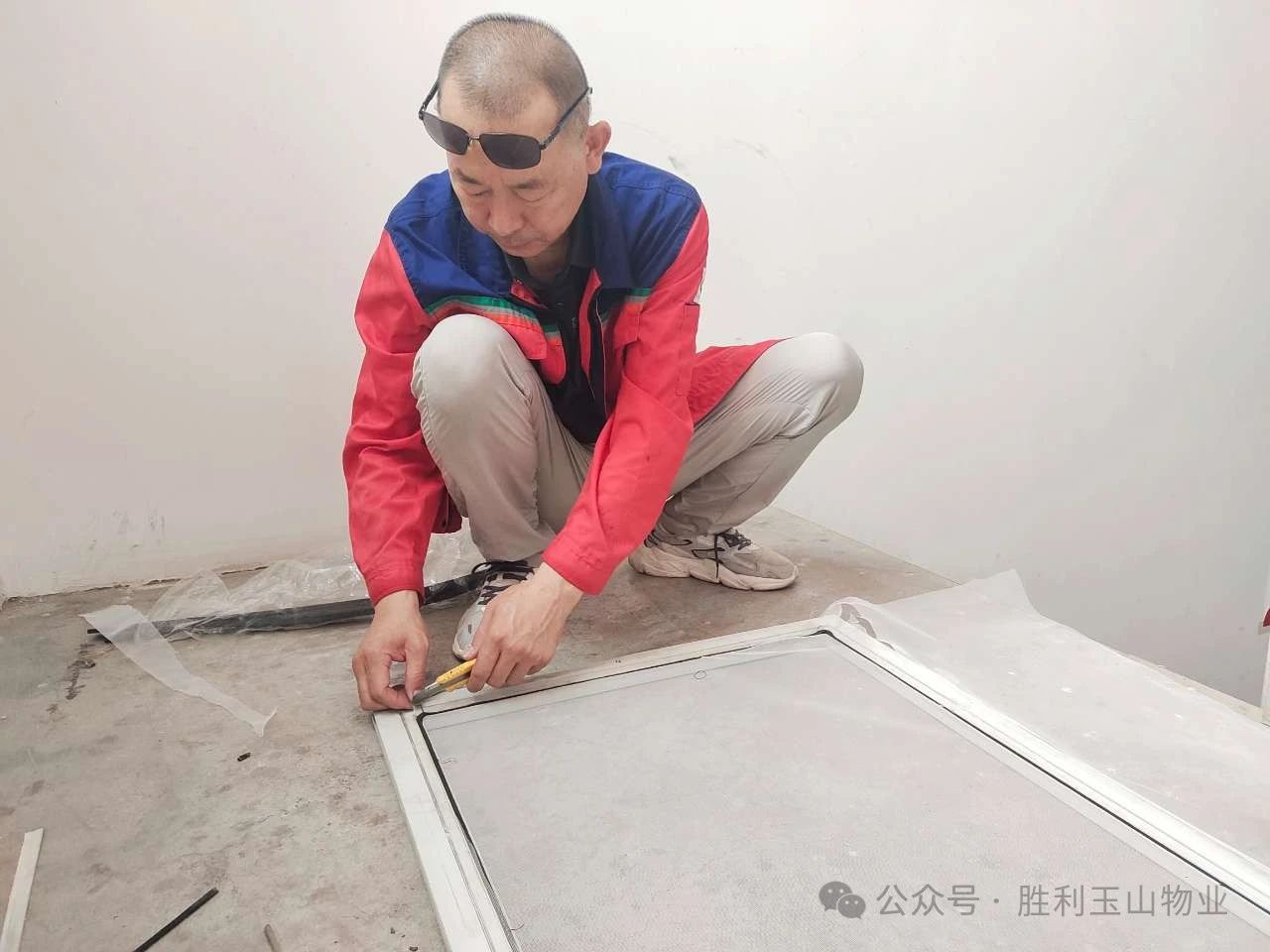 故事还得从这儿讲起。胜利玉山物业聚园事业部南苑东二区项目经理赵鲁军在例行检查楼道卫生时,偶然间听到一位业主的抱怨:“楼道卫生保持得真不错,就是我们这楼层的纱窗坏了,挡不住苍蝇蚊子了。”言者无意,听者有心。赵鲁军随即对小区内楼道纱窗的破损情况进行了全面排查,并在当天就制定了解决方案。