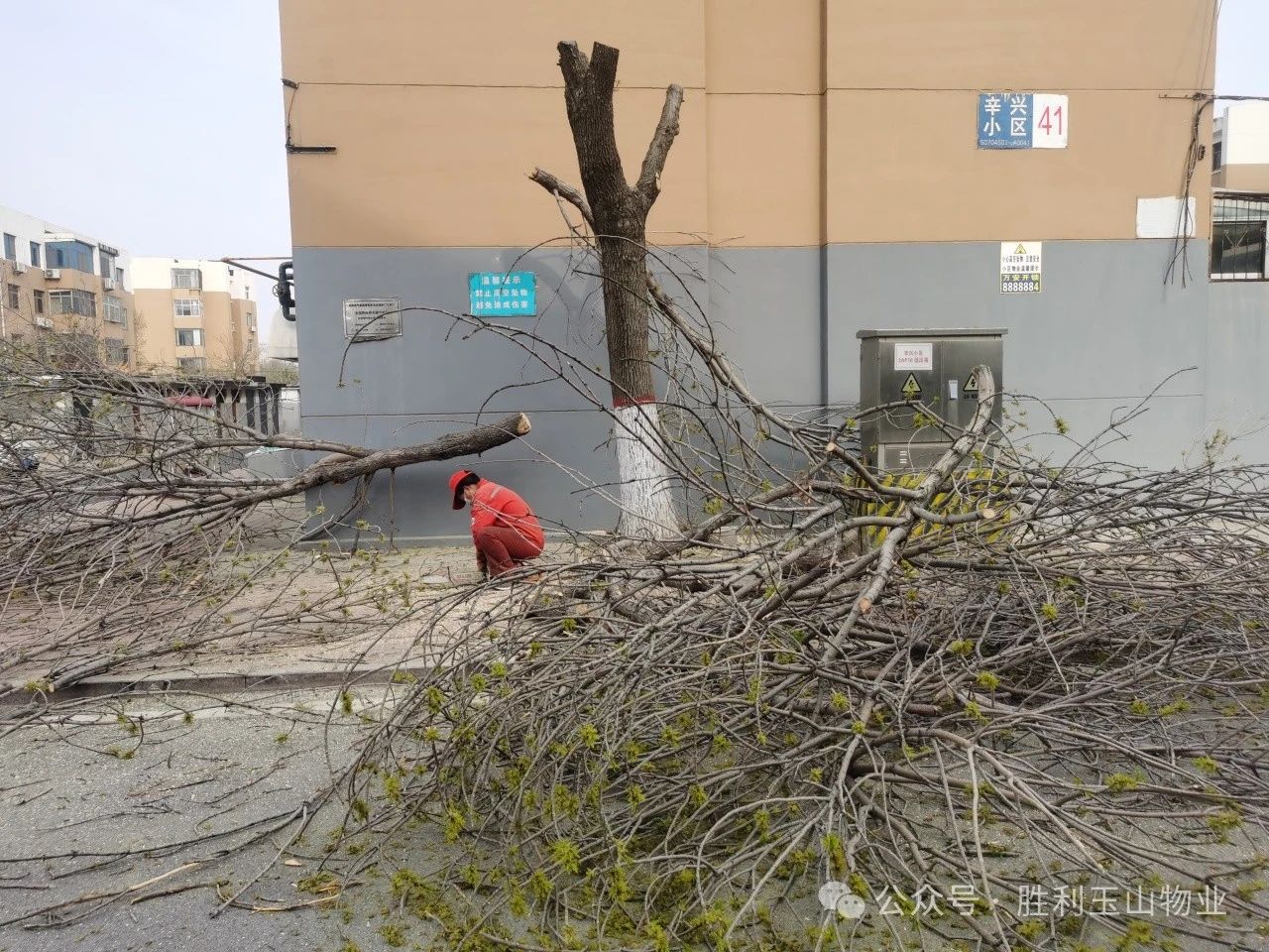 鉴于服务区域内小区普遍存在的公共设施老化、树木健康状况不佳、菜窖平房结构老旧等问题,辛兴事业部采取了多项针对性措施。首先,针对树木倒塌风险,事业部年初即对小区内403棵树冠庞大的树木进行了适度修剪(即“打头”),以减轻树冠重量,降低风阻;同时,对虫害严重的树木进行了清理,确保树木健康。进入6月,事业部再次组织专业团队,对树木进行全面排查,对倾斜树木实施拉直培土加固,对存在裂纹的树干进行修复加固,有效防范了雨季极端天气可能导致的树木倒伏风险。