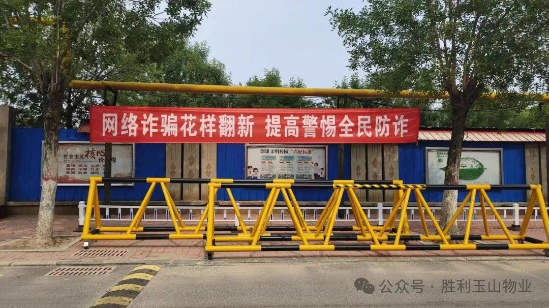 同时,胜利玉山物业还在辖区最醒目位置悬挂了宣传横幅,提醒广大小区居民时刻警惕各种利益的诱惑,提高防骗识骗能力,不给诈骗分子留有可乘之机。在业主微信群中,公司不间断地提醒小区居民规避各种投资风险,打消心存侥幸的心理,避免上当受骗遭受经济和财产损失。