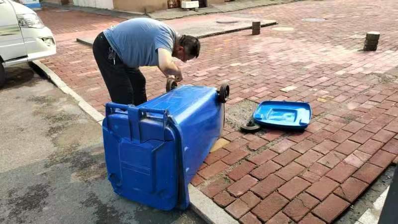 夏季,是最费垃圾桶的季节。几乎每天垃圾桶都是满的,再加上频繁倒装垃圾达到日产日清,使得垃圾桶的轮子、提手、桶盖等部位容易损坏。为了节约成本支出,辛兴事业部建工项目的王吉刚就主动揽下了这个“瓷器活”。