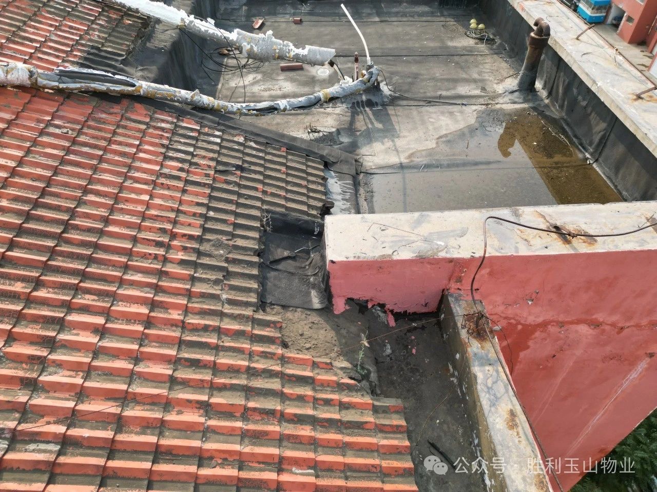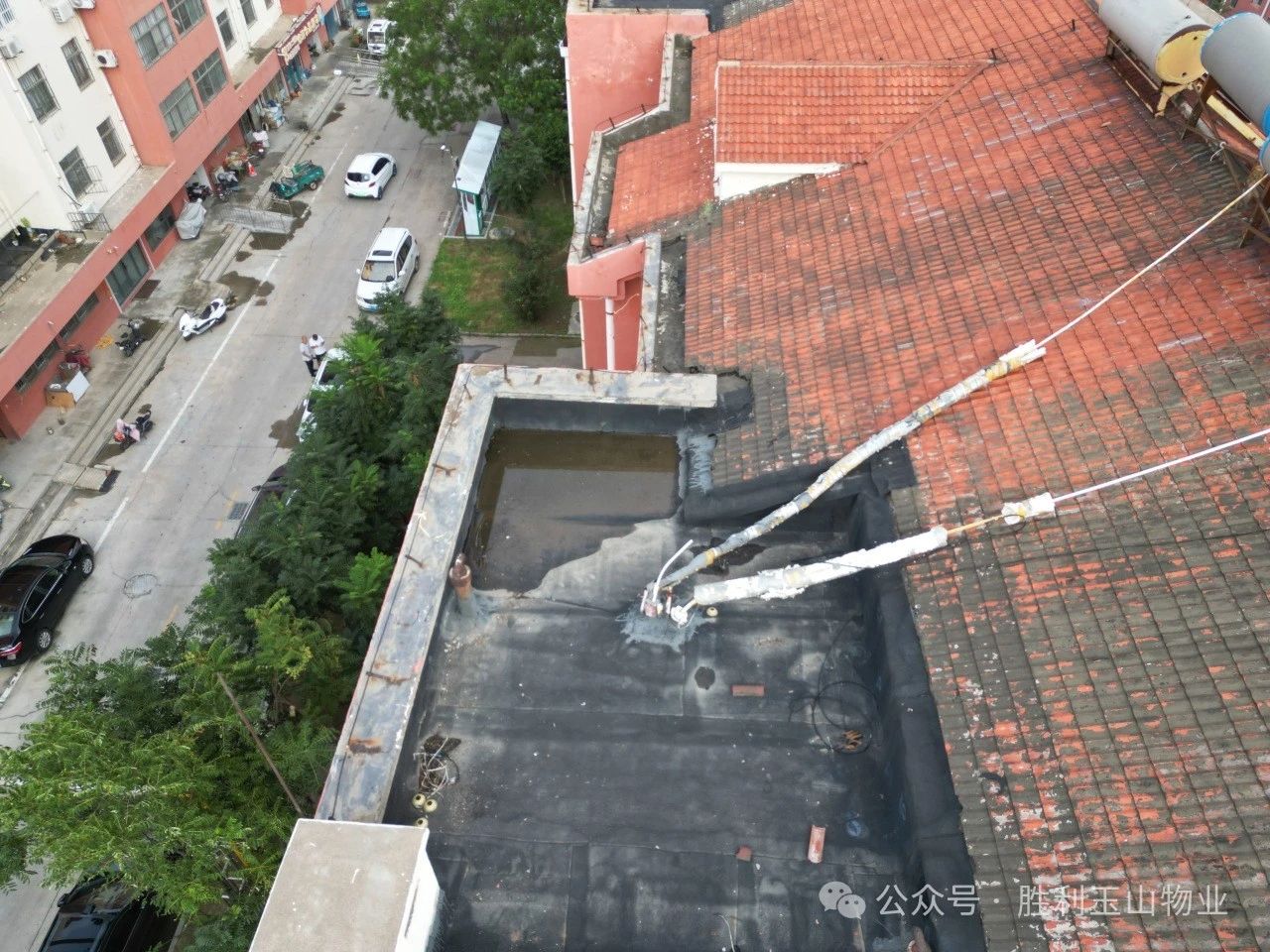 8月18日,胜利玉山物业幸福事业部文明项目组接到了440报修电话,随即维修人员迅速响应,与业主取得联系并核实了情况。业主表示:“屋顶刚做过防水处理不久,理论上不应该漏水,但还是请物业帮忙检查一下。”鉴于老旧小区坡屋顶结构复杂,传统的人工摸排方式耗时长、效率低,文明项目经理孙伟灵机一动,决定采用无人机进行勘察采集资料。