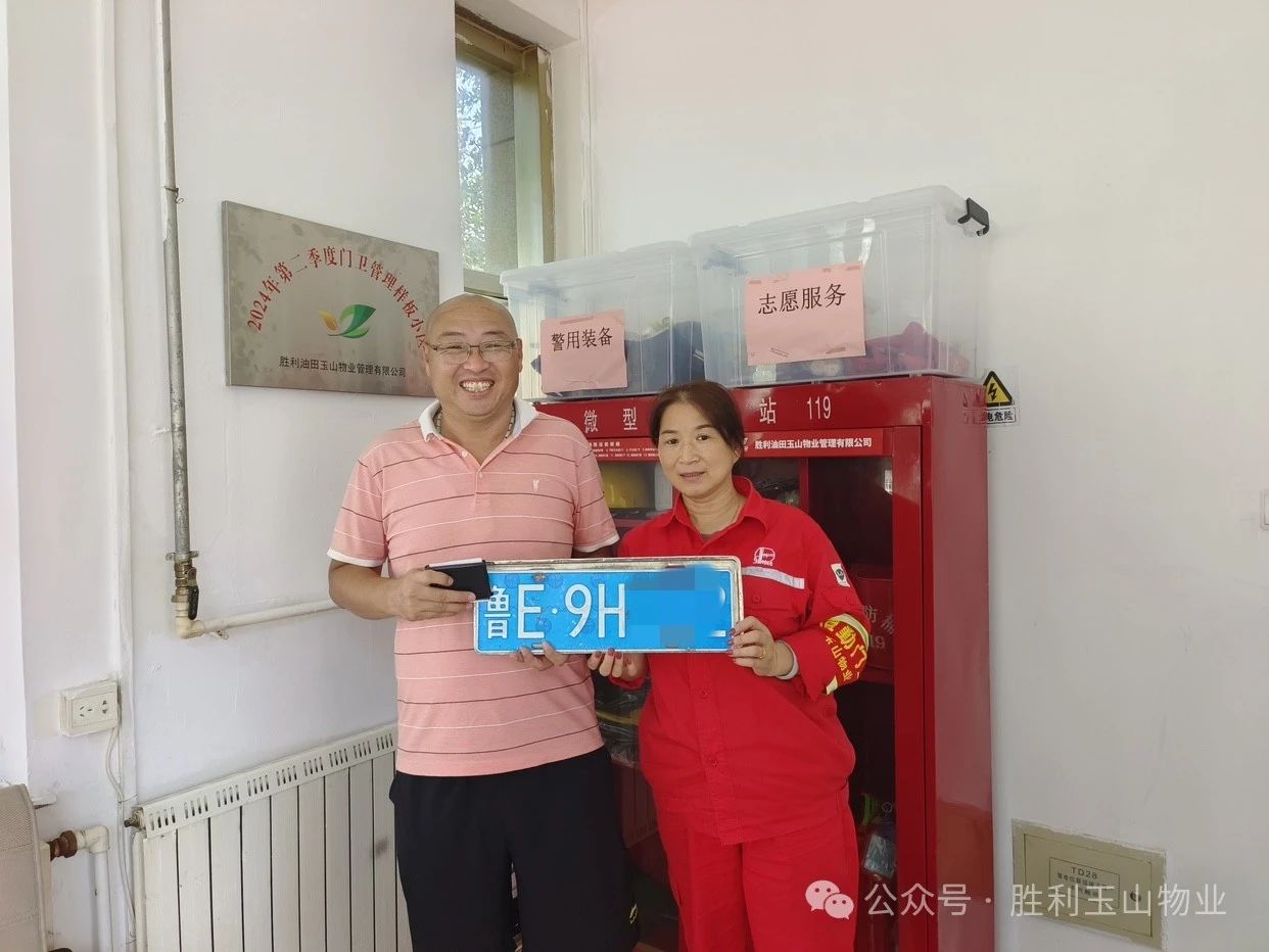 在这混乱之际,聚园事业部南苑东三区的一位门卫工作人员,以她的细心与责任感,在巡查时于章丘路上意外发现了五块散落的车牌。她迅速行动,首先拍照记录车牌号,并立即在小区业主群内发布信息,询问是否有业主遗失车牌,可以凭身份证和行驶证前来领取。为更精准地找到车主,她还利用物业的车辆管理系统进行比对,确认是否为小区居民所有。此外,她还主动联系了交管部门,上报车牌信息,力求尽快物归原主。