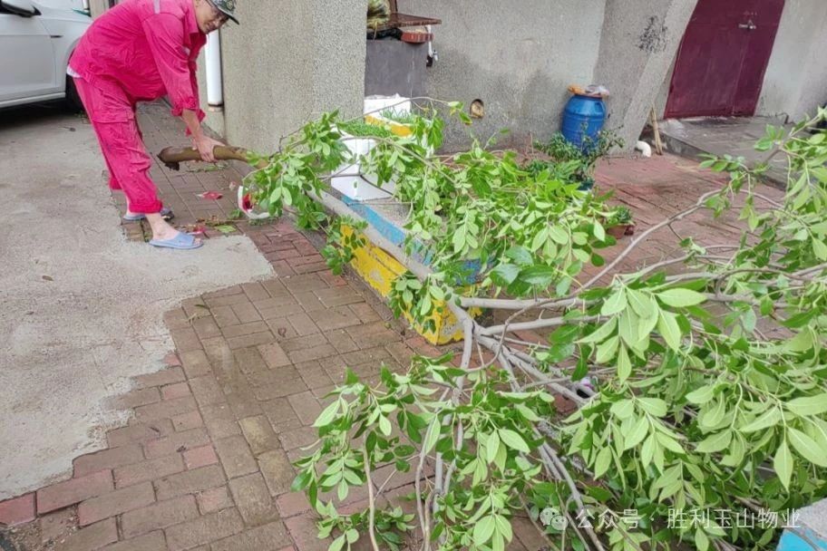首先,针对小区内多条道路积水严重的问题,积水退去后,路面遗留的垃圾漂浮物不仅阻碍了居民的正常出行,也加重了物业清理工作的负担。各小区工作人员手持铁锨、大扫把等工具,轮番上阵,不辞辛劳地铲除地面淤泥,清扫各类垃圾,并清理折断的树枝,逐步恢复小区原有的干净整洁环境,确保居民出行顺畅。