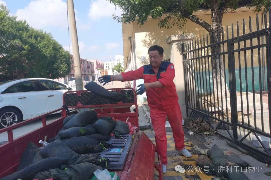 为了节约成本并实现资源的最大化利用,物业人员还积极组织回收之前为应对台风而放置在楼道内的防汛沙袋。他们将回收的沙袋重新放回防汛沙池备用,并对吸水膨胀袋进行晾晒处理,以备未来再次使用。这一举措不仅体现了物业人员的环保意识,也展现了他们精打细算、节约成本的良好作风。