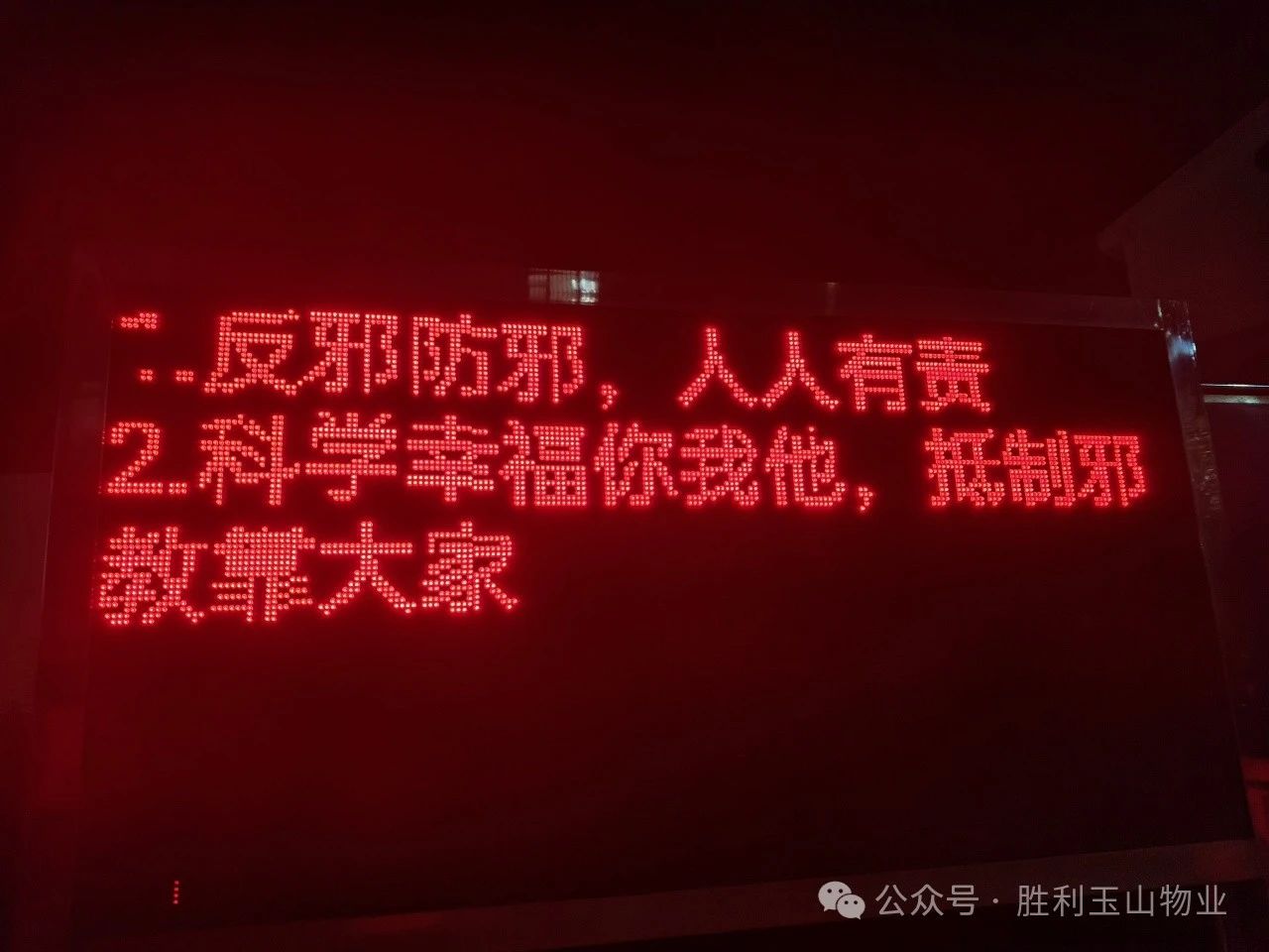 胜利玉山物业呼吁小区居民积极行动起来,共同参与到反邪教的斗争中来。要保持清醒的头脑和理性的思维,不要轻易相信那些不切实际的承诺和荒谬的教义。要加强科学知识的学习,用科学的眼光审视世界,对邪教的歪理邪说保持高度的警惕和批判精神。邻里之间要相互关心、相互帮助、相互监督,一旦发现邪教活动线索,要立即向公安机关举报,共同维护小区的安全与稳定。