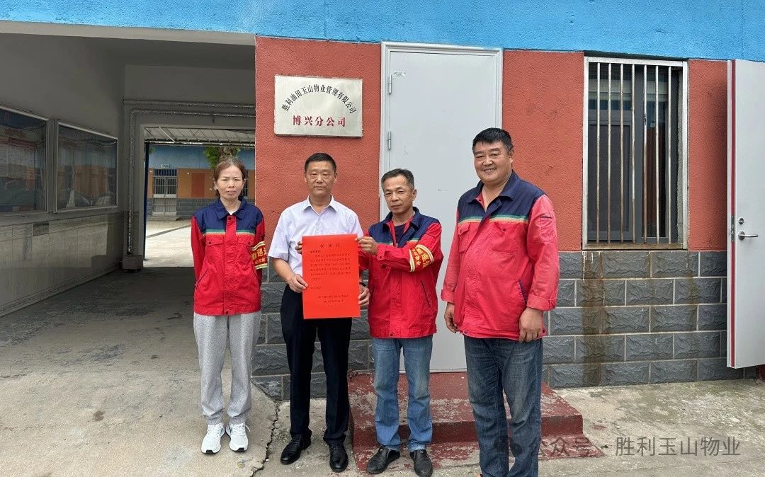 社区王书记感慨道:“多年来,博兴分公司与我们社区保持着紧密的沟通与协作,共同完成了众多重要保障任务。保洁员、维修工们不畏风雨,坚守岗位,这份坚持与奉献深深打动了社区和每一位业主。今天,我们再次通过这面锦旗和表扬信,向博兴分公司及其一线工作人员表达最深的谢意,是他们的不懈努力,让小区变得更加宜居、更加美好。”