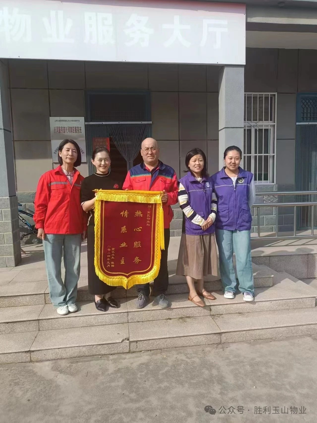9月26日午后,胜利玉山物业兴河事业部兴河南区的居民满怀感激之情,将两面写有“热心服务,情系业主”的锦旗,送到了兴河南区收费员杨春丽与东二区收费员张琳琳的手中,感谢她们帮助寻回丢失宠物犬。