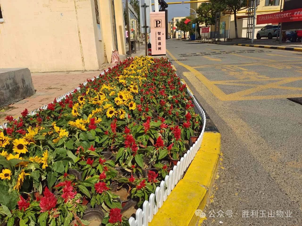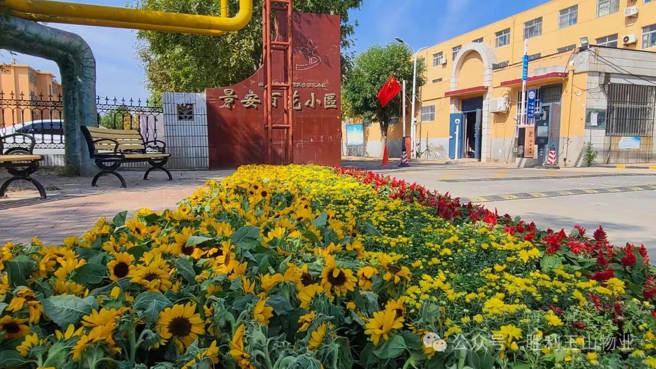 在国庆佳节来临之际,为庆祝新中国成立75周年,营造浓厚的节日气氛,胜利玉山物业景安事业部积极行动,在各小区开展花卉摆放与国旗悬挂工作,为节日增添一抹绚丽的色彩。