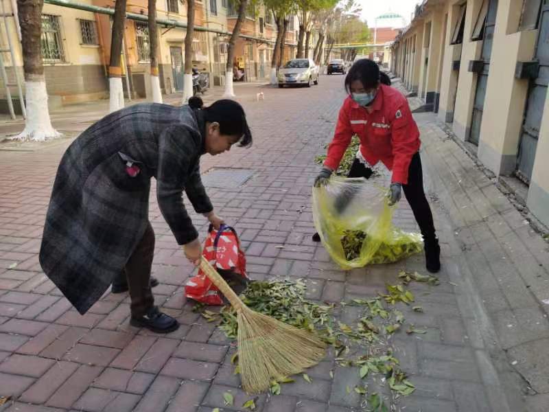 小区内保洁工作人员拿着扫把和垃圾袋认真地清扫着每一处落叶,对绿化带内外、雨水篦子周边、人行便道等处的落叶进行清扫。他们不仅要把落叶扫成一堆,还要集中收集到垃圾袋里及时清运,确保小区的环境整洁。在大家的共同努力下,小区的环境焕然一新。