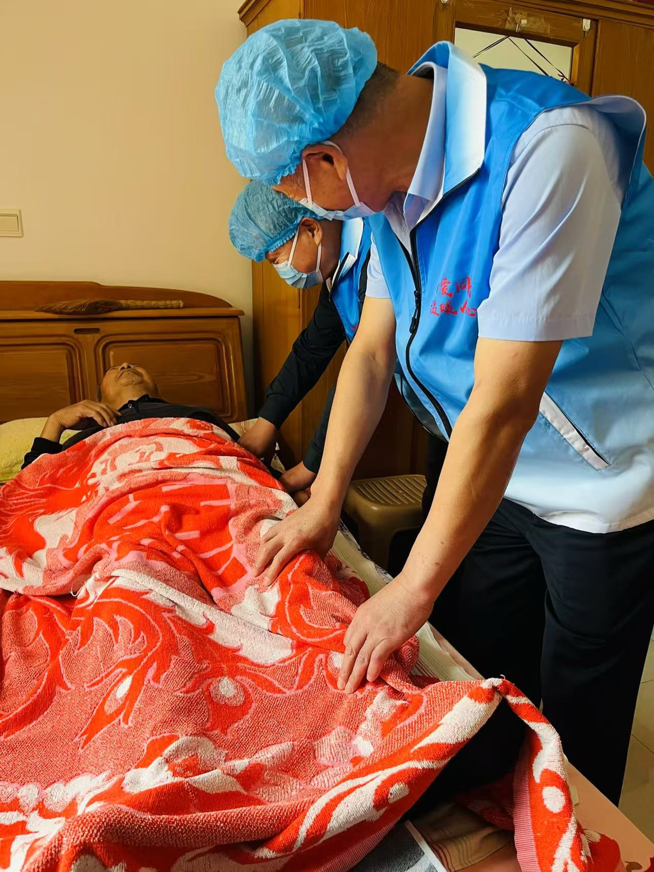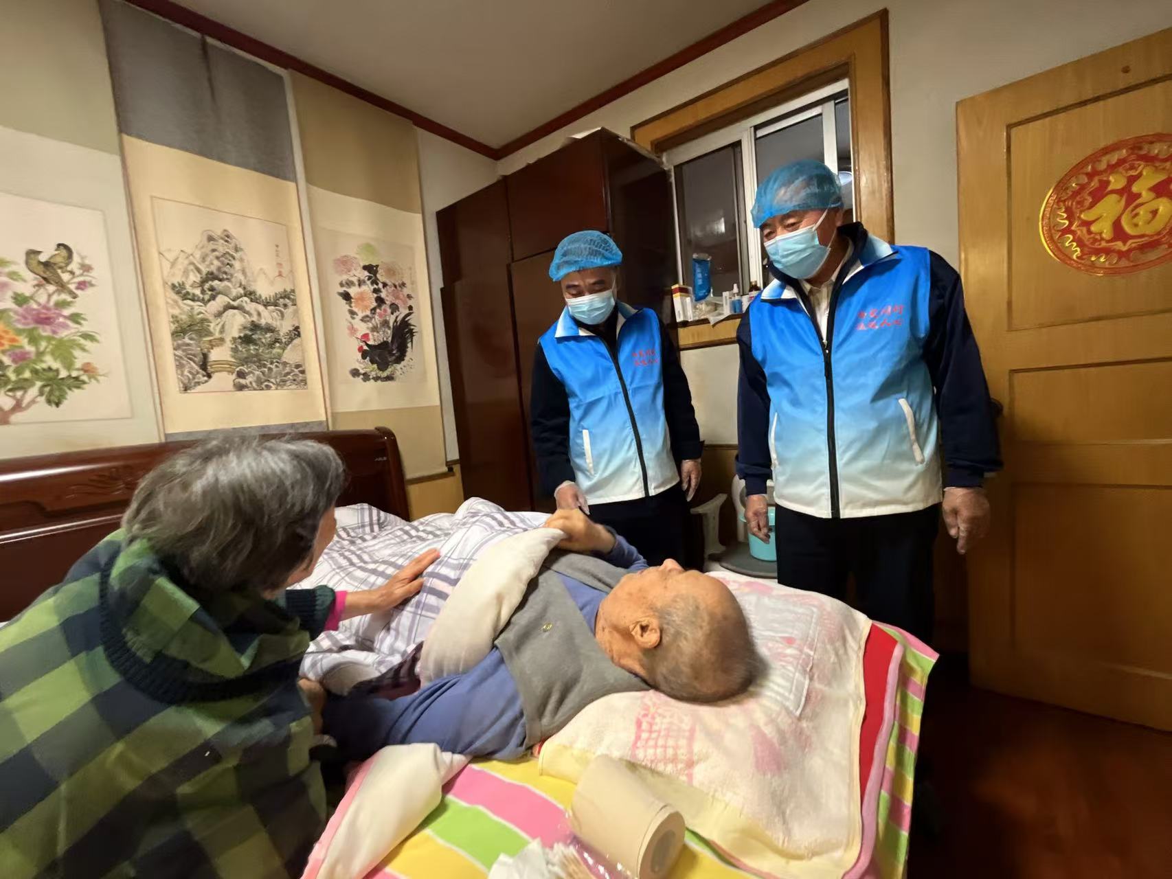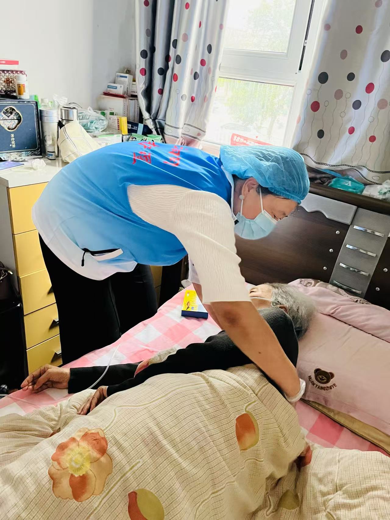 中区的李大娘因为多年心血管疾病卧床不起,景苑康养专业人员严格按照服务流程提供上门服务。从进门鞋套手套口罩穿戴,入户前消毒,按照规定要求完成准备工作。温暖的话语、专业的素养、到位的手法,为阿姨舒缓身体上的不适,从腿部疏通、背部按摩,床铺整理,都体现出景苑专业人员的技术素养和专业水平,得到了家人的认可和信任。