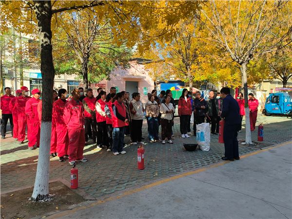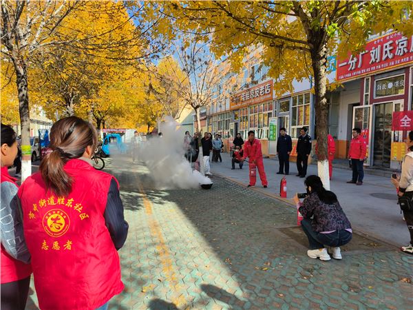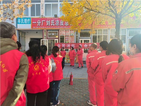 第33个119全国消防日到来之际,滨州分公司联合居委会、派出所在胜滨小区小市场开场了一场消防知识宣传和应急演练活动。