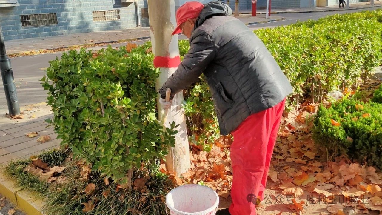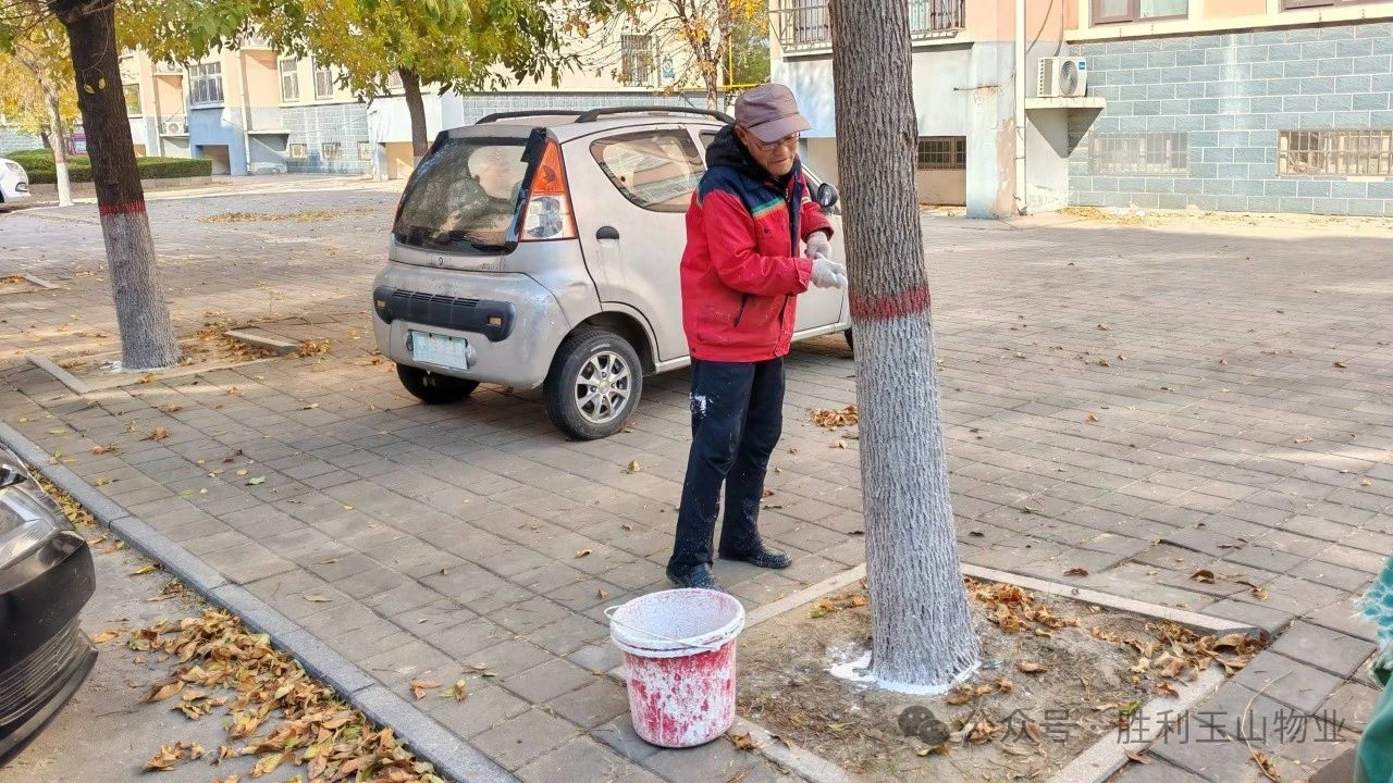 随着气温逐渐下降,为确保小区内树木能够安全越冬,近日,胜利玉山物业胜兴事业部胜凯项目积极组织并开展了树木涂白作业。