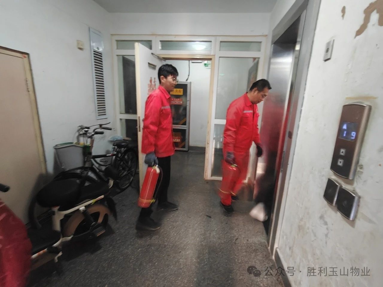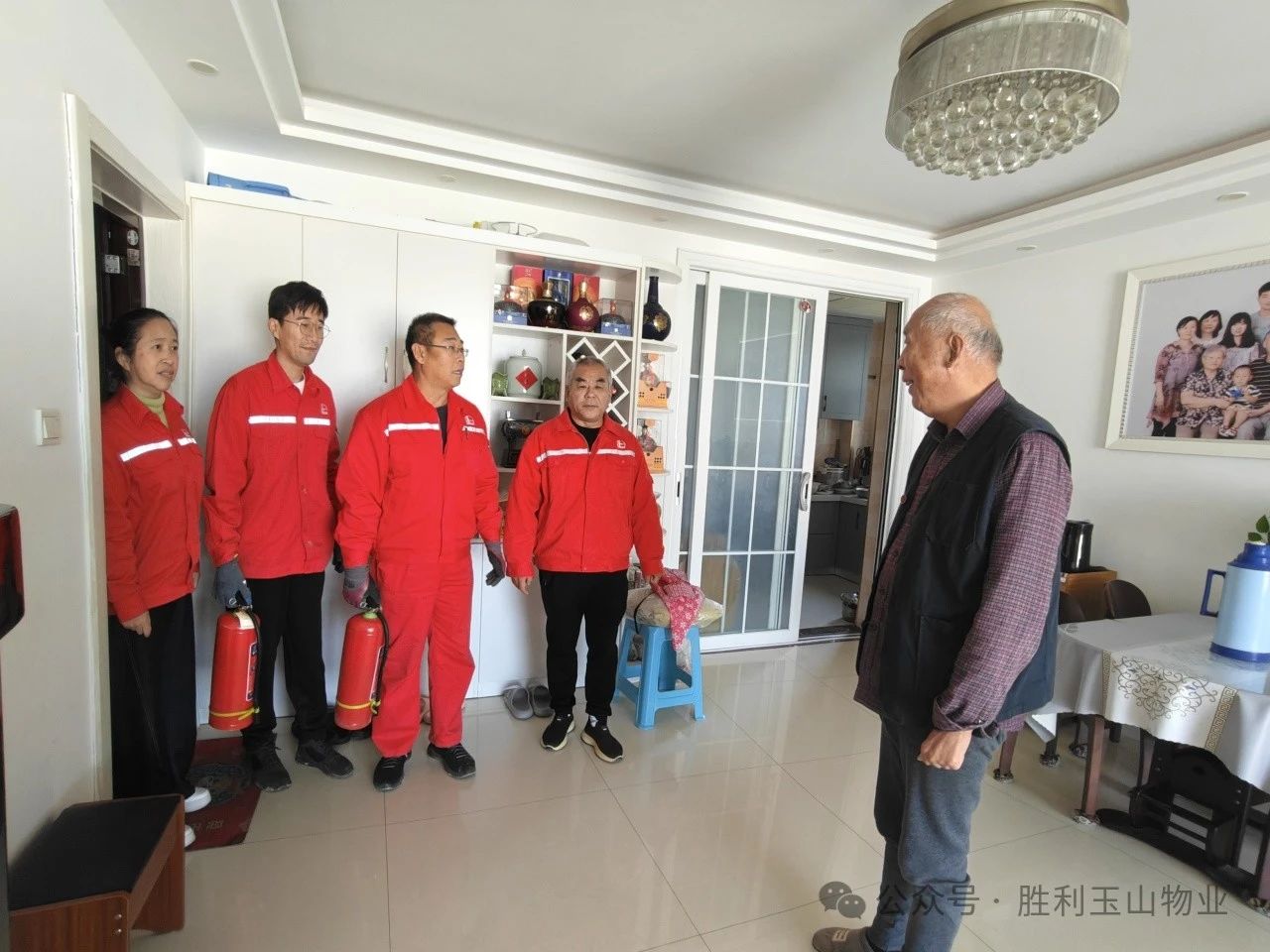 东二区物业在接到报警电话后,站长杨志强迅速组织杜锐、张卫星、唐海红等工作人员,携带灭火器赶往现场。他们一路疾步,迅速抵达老人家中,发现厨房内燃气仍在持续燃烧,情况万分紧急。面对险情,物业人员当机立断,迅速关闭了燃气阀门,有效切断了火源,成功阻止了火势的进一步蔓延。
