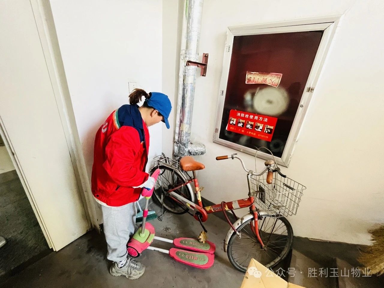 胜利玉山物业景苑事业部人员在日常巡检中发现,部分楼道存在杂物堆放及电动车随意停放的现象。为消除潜在的消防安全隐患,事业部借消防月之际,围绕“全民消防,生命至上”的主题,开展了楼道杂物及电动车停放整治活动,旨在全面提高居民的自身安全防范意识,共同营造一个安全、稳定的居住环境。