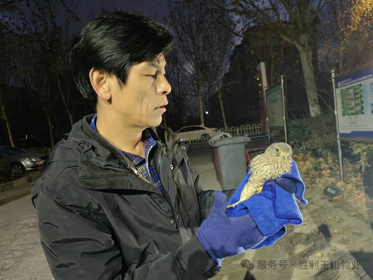 一天傍晚,有居民反映称,自己所居住的胜源南区发现一对疑似国家二级保护动物红隼的野生鸟类。