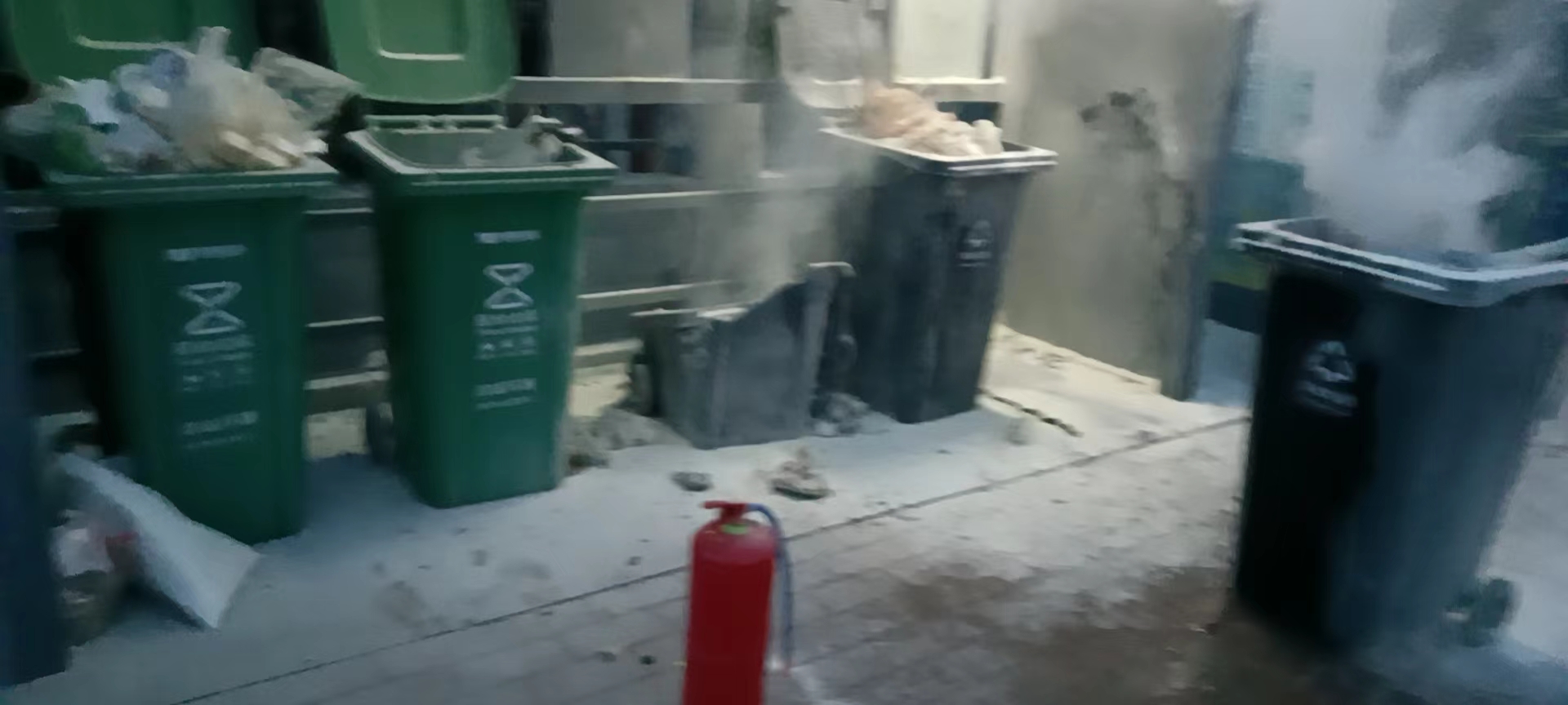 由于扑灭及时,垃圾桶存放亭中的其它5个垃圾桶安然无恙。齐师傅这一利落规范的操作得益于单位平时的消防安全培训。