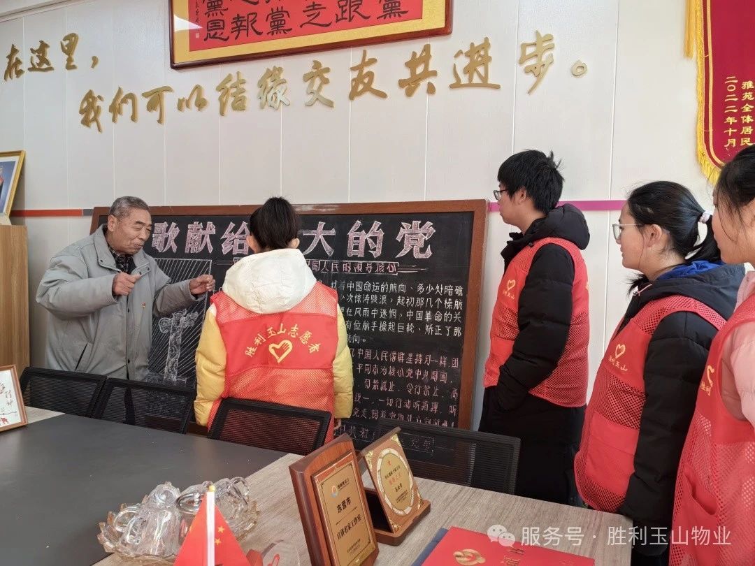 新年伊始,万象更新。在这个充满希望与活力的崭新开端,为了增强民族自豪感,全面提升民族自信心,大力弘扬爱国主义精神,胜利玉山物业玉山事业部志愿服务团队以高度的责任感、使命感精心筹备、策划并积极组织了一场爱国主义教育活动—— 引领青少年走进雅苑小区的“金章工作室”,一同回溯历史,探寻往昔的峥嵘岁月。