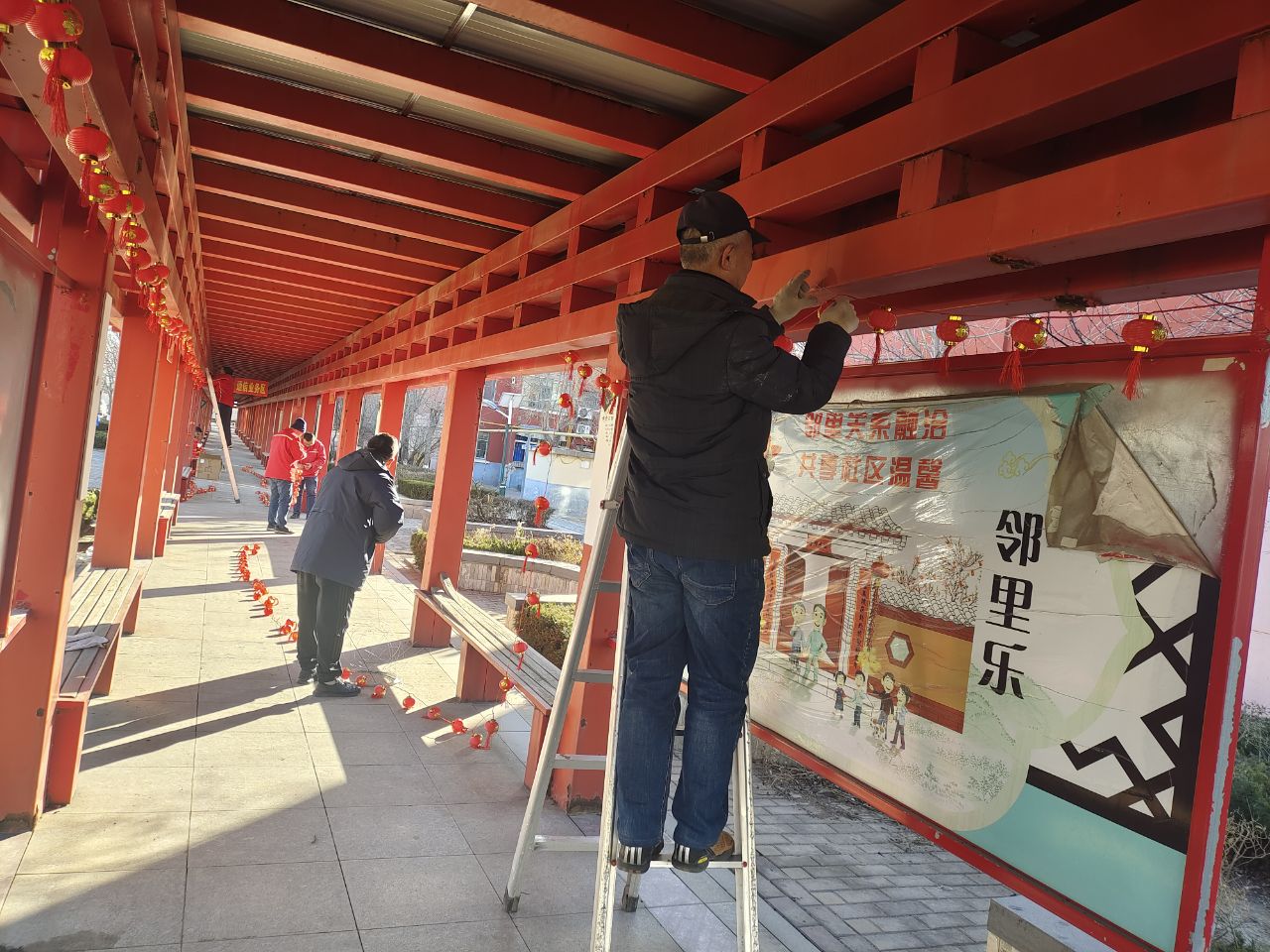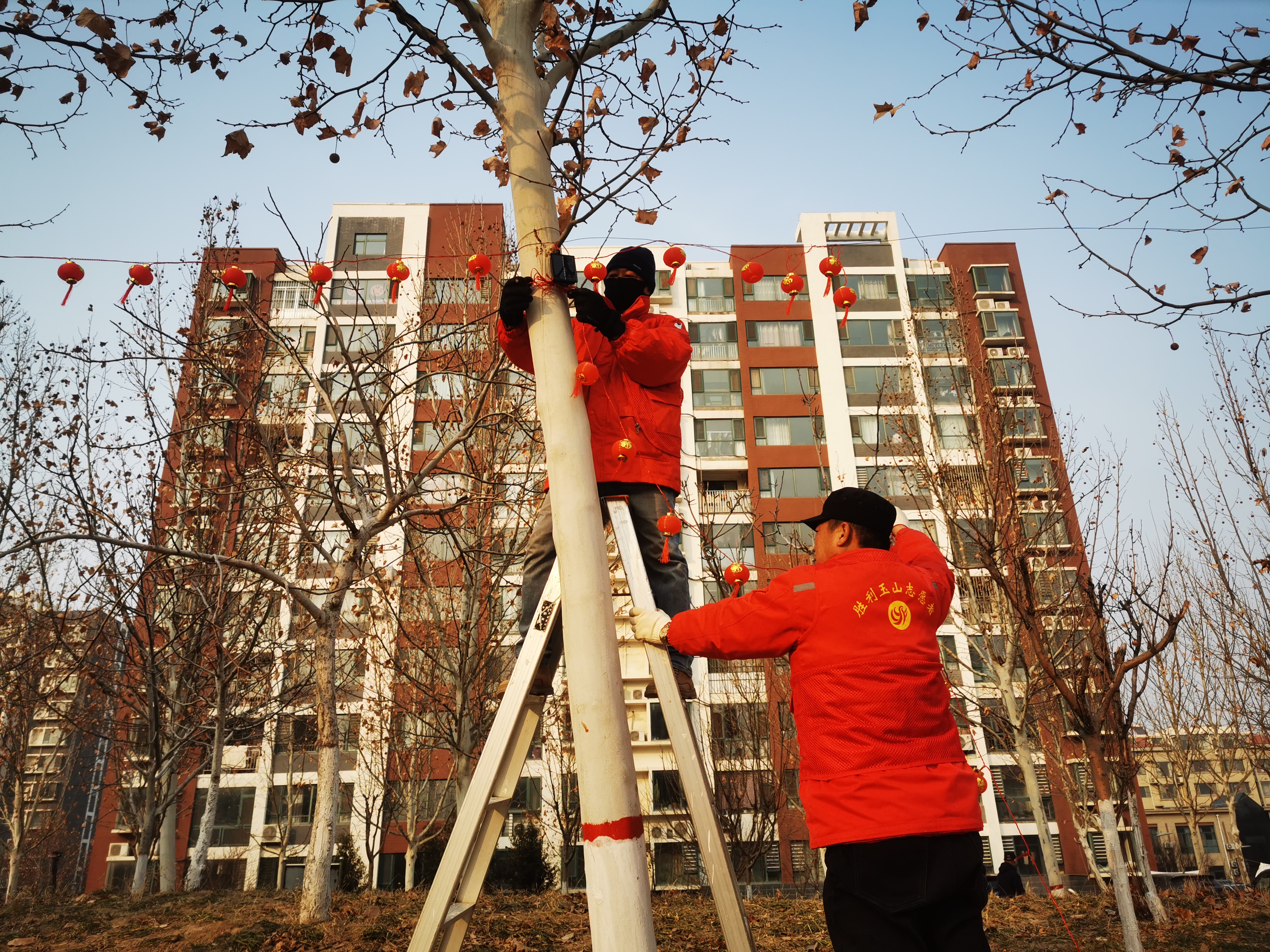 1月21日上午,景苑事业部各小区项目经理克服人员少,任务重的困难,顶着寒风,积极开展节日装点亮化。在辖区门卫、主干道灯杆上悬挂大红灯笼,收费大厅、各办公场所悬挂横幅张贴福字、对联窗花等,营造浓厚节日氛围。