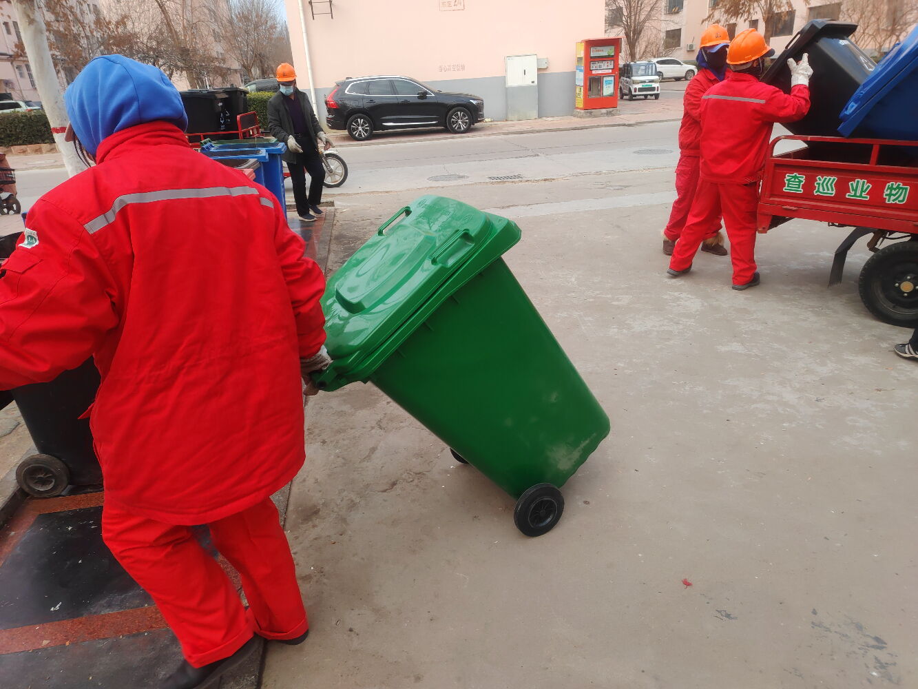在新春佳节即将到来之际,小区垃圾骤增,为防止节日期间垃圾外溢,滨州分公司根据每天的清运垃圾量骤增情况,在各小区增设临时垃圾桶,确保居民干干净净过春节。