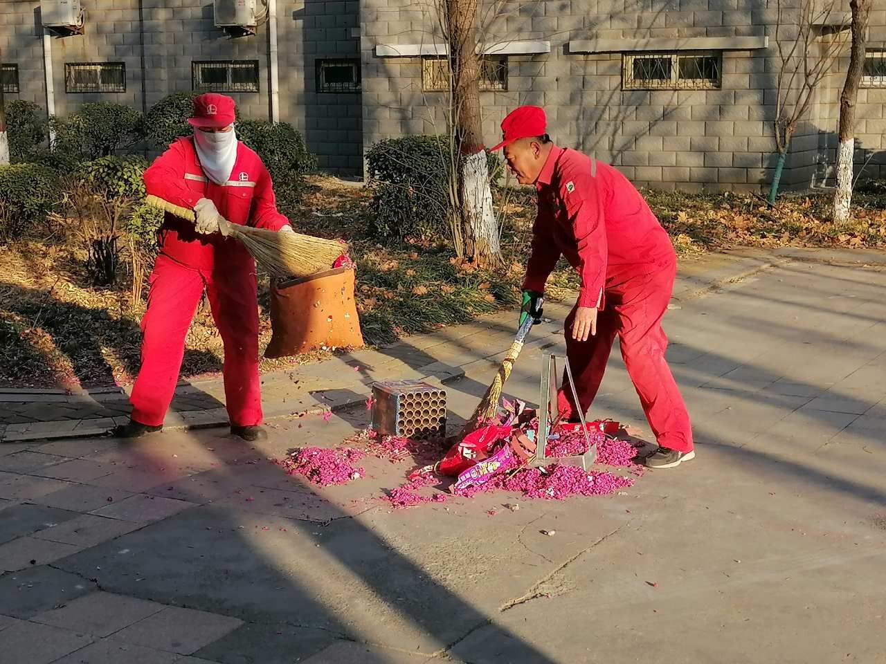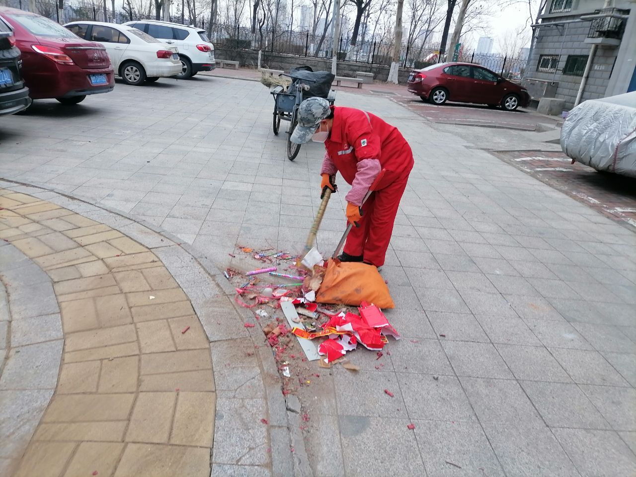 鞭炮和烟花为辞旧迎新带来喜庆和欢乐的同时也为保洁人员增加了繁重的工作,她们在日常保洁时还要清理鞭炮纸屑和烟花纸壳,直至清理干净为止守护小区的洁净;