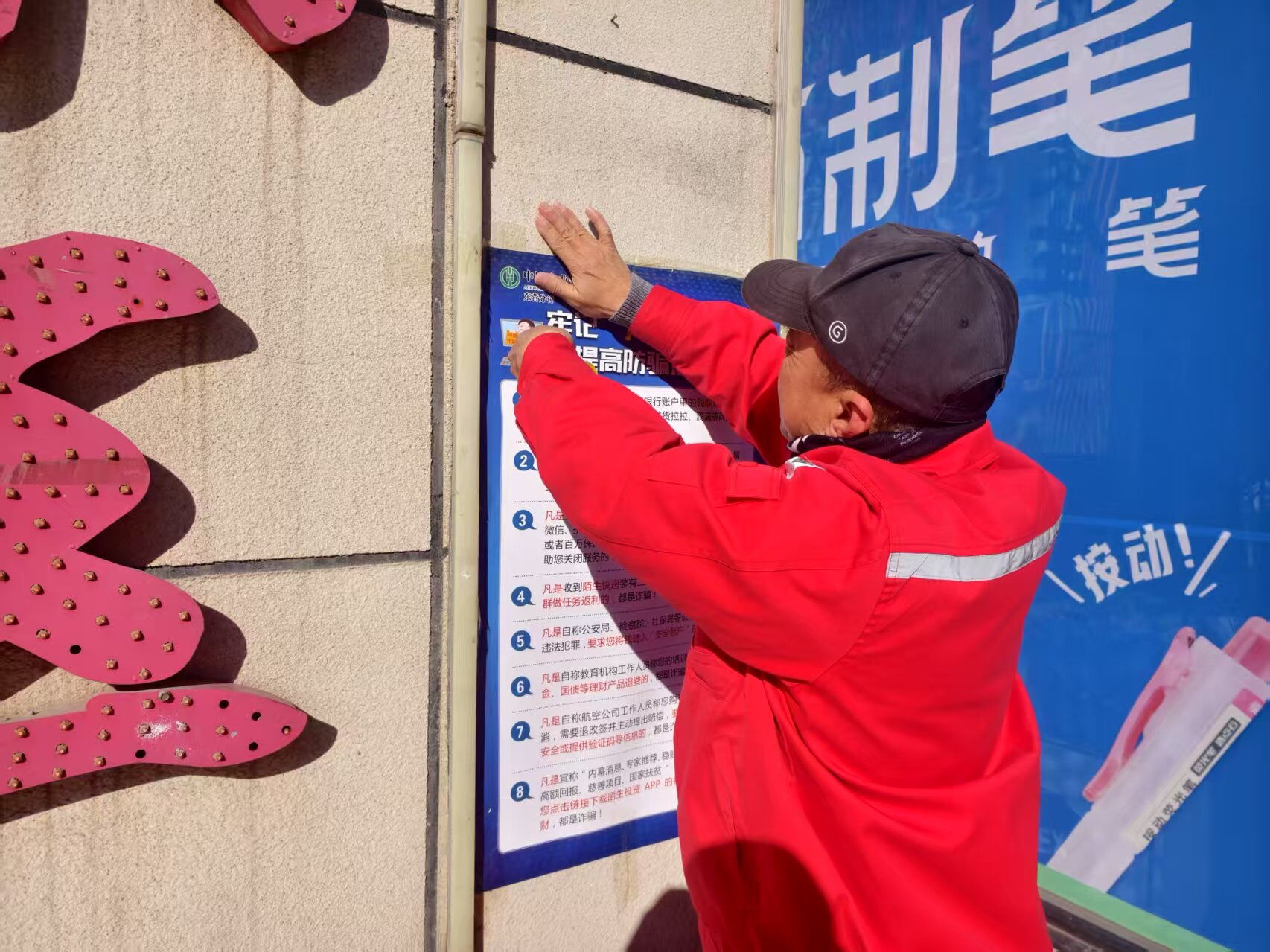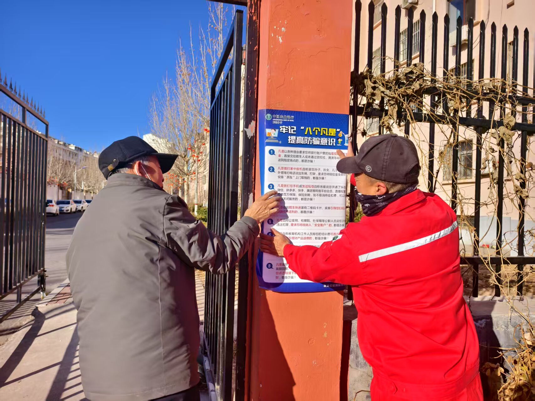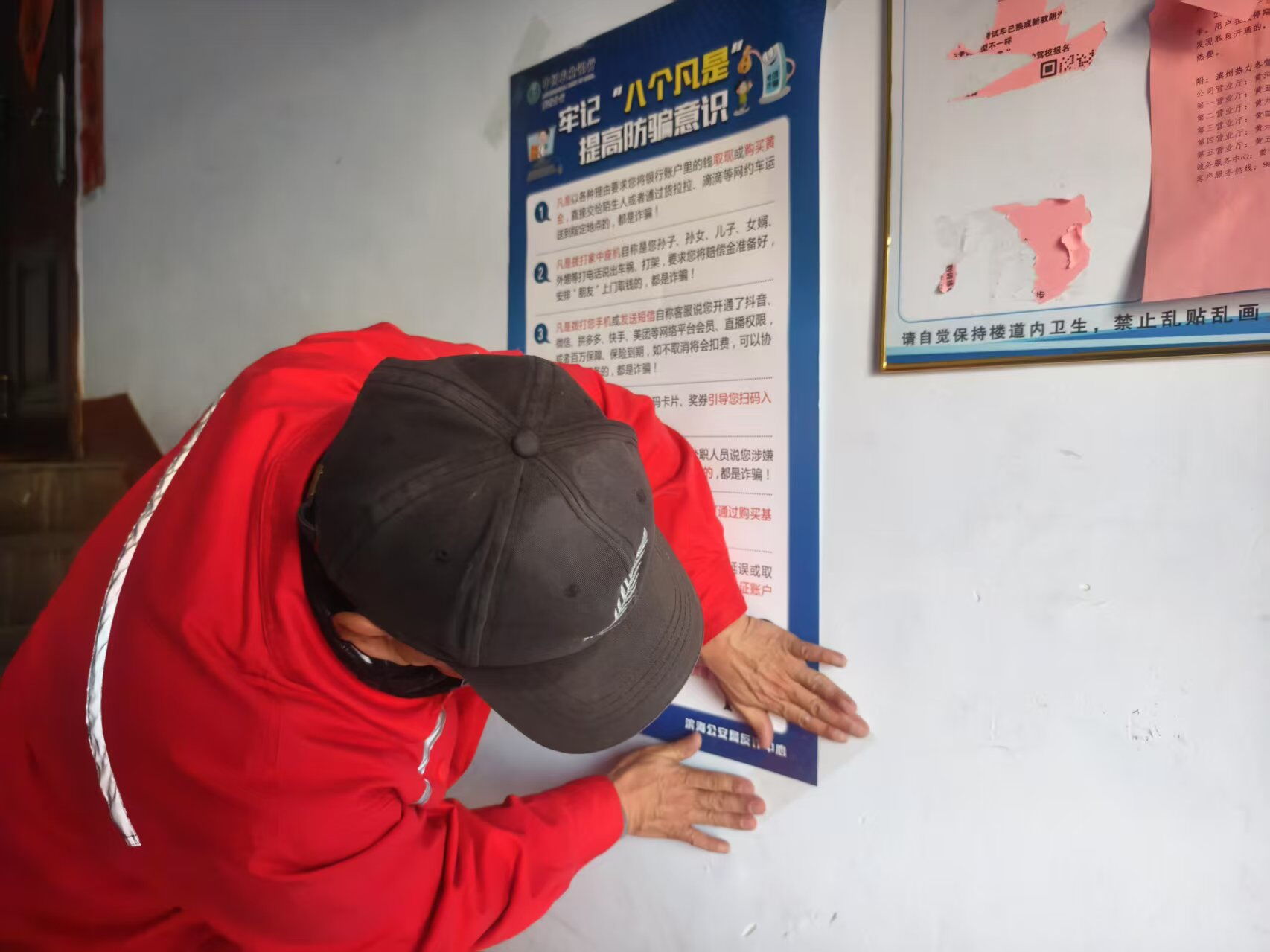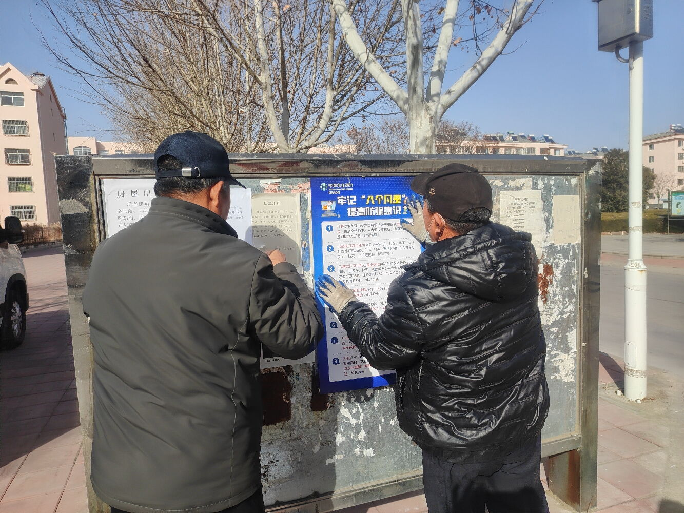 2月7日,滨州分公司在辖区各小区张贴防诈骗宣传单,提高小区居民的防范意识。