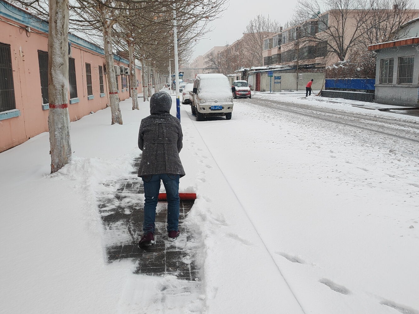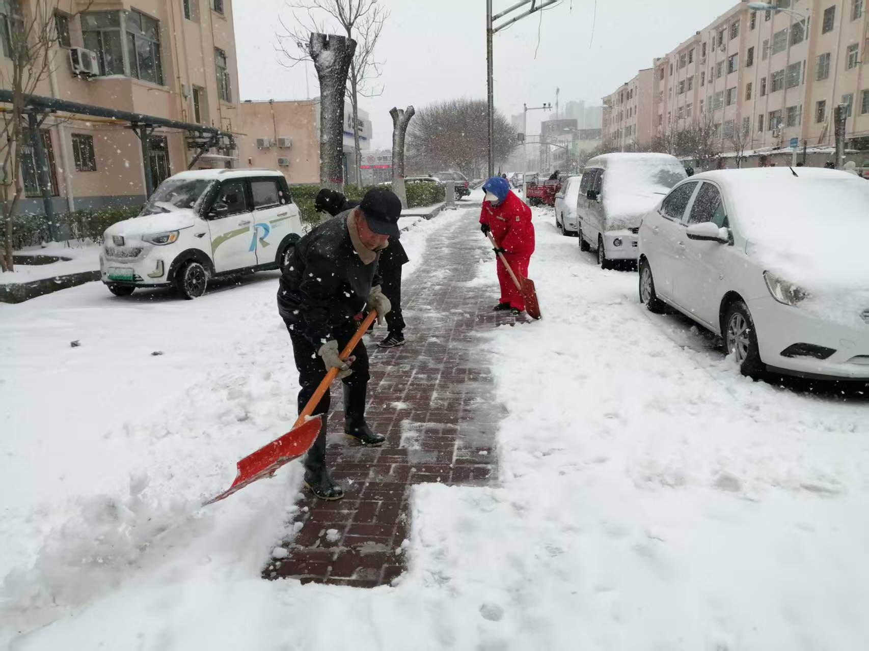 3月2日,一场初春大雪,使小区处处银装素裹,景色格外美丽,滨州分公司员工“以雪为令”连续两天作战、他们顶风冒雪清理道路上的积雪积冰,保障的居民出行安全。