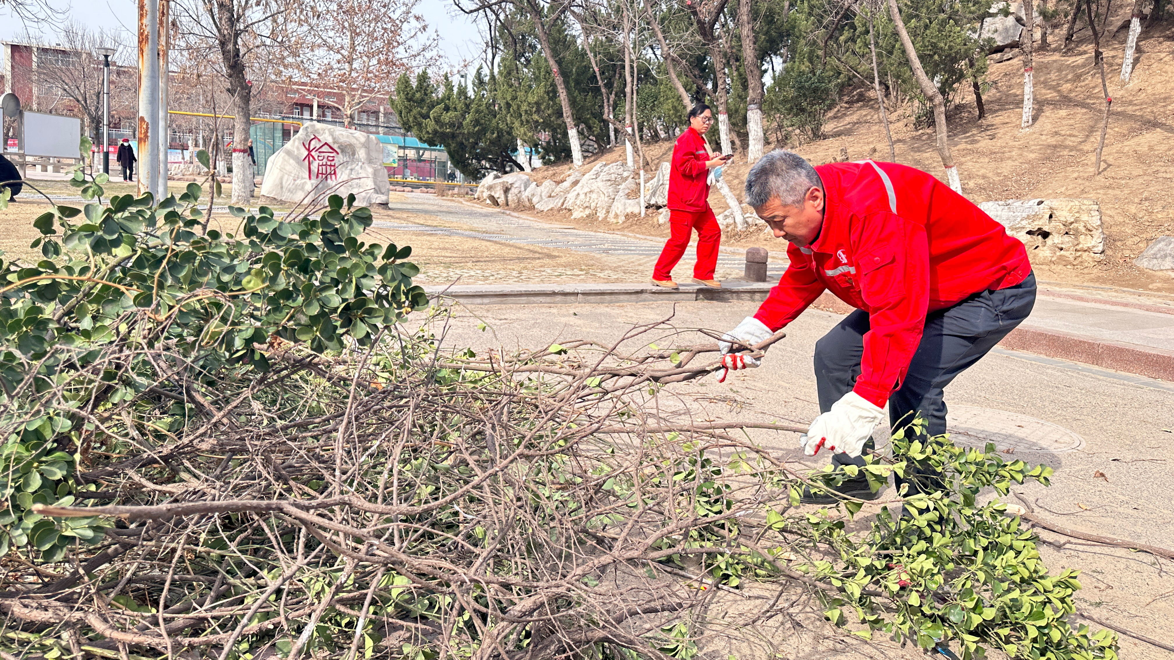 为此,胜兴事业部高度重视,迅速行动,安排专业绿化人员对花池内进行了细致排查和清理。工作人员利用专业工具,将枯枝、死枝逐一剪除,为保证枯枝的清运,工作人员将较粗的枯枝分段切割后再依次倒入垃圾车,经过大家的不懈努力,灌木枯枝彻底清除干净,人机协作,大大提升了工作效率,在清理枯枝的同时对花池内的杂草、垃圾进行了彻底清理,确保花池整洁有序。