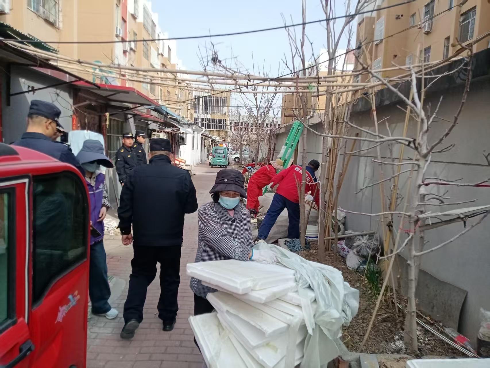 为了推动杂物清理工作的正常运行,东辛项目通过与辛兴社区居委会沟通,请来了具有执法权的城管人员配合。