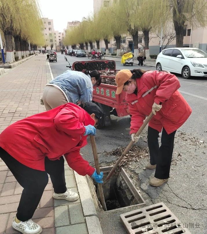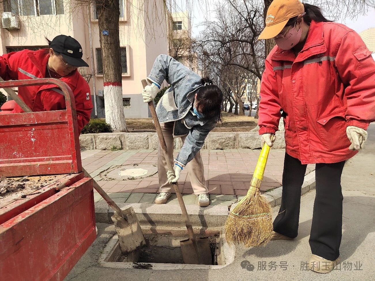 胜利玉山物业滨州分公司于3月16日,针对小区排水系统的高效运行需求,组织了一场雨水篦子的专项清理行动。此次行动覆盖了小区的主循环路区域,工作人员配备了铁钩、簸箕、铁锹等专业清理工具。