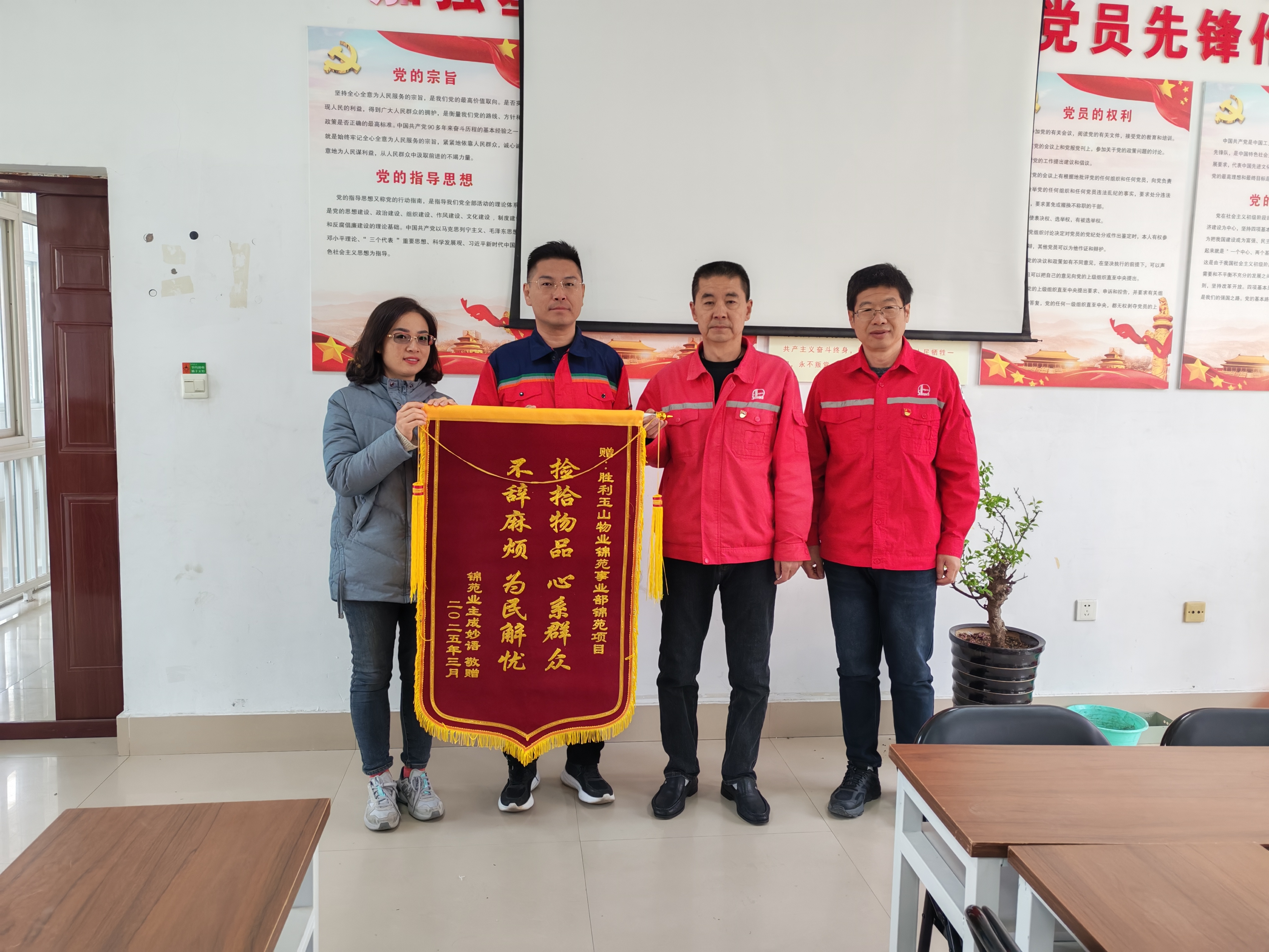 本以为事情就此画上句号,第二天,物业办公室迎来了一位特殊访客——成女士。她手捧着一面鲜艳的锦旗,上面绣着“拾捡物品心系群众,不辞麻烦为民解忧”几个大字。成女士紧紧握着小李的手说:“你们的善举让我感受到了这个小区的温暖,也让我对咱们物业的服务更加信任和认可。”